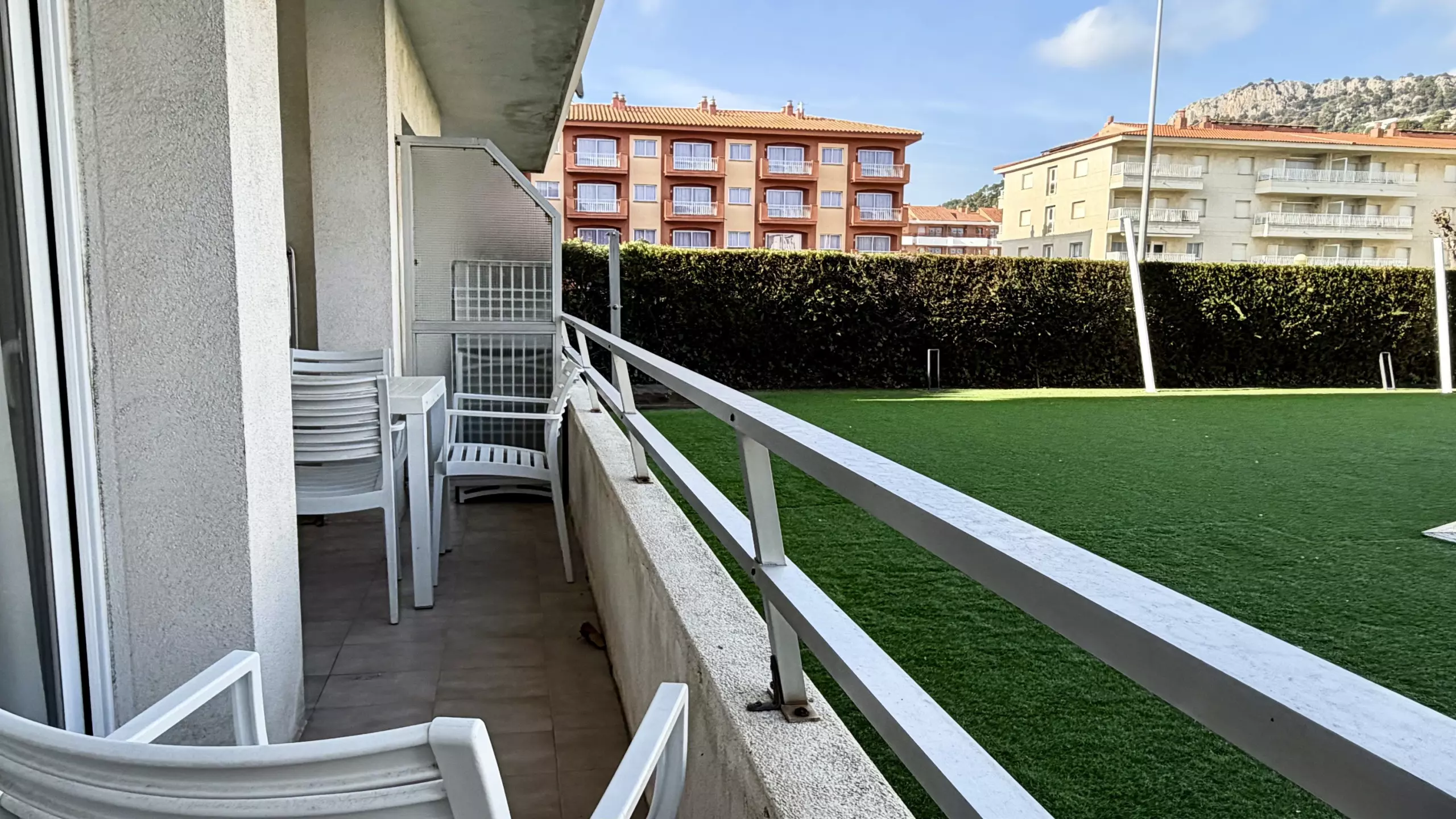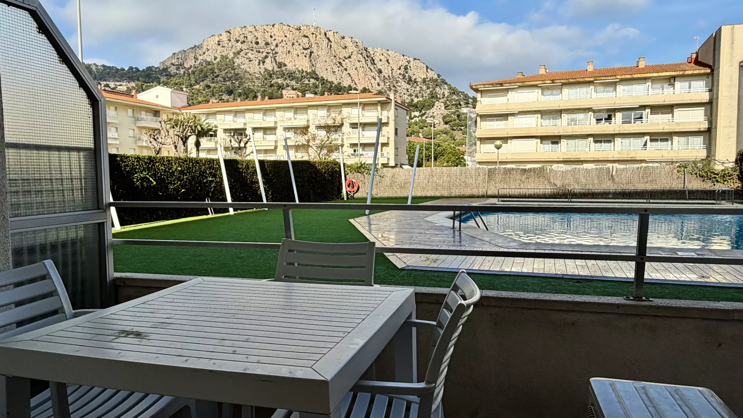 L'appartement dispose d'une terrasse charmante qui vous permettra de profiter de moments tranquilles en plein air. La piscine partagée est idéale pour des moments rafraîchissants lors des journées chaudes, où vous pourrez vous détendre et profiter du soleil méditerranéen.