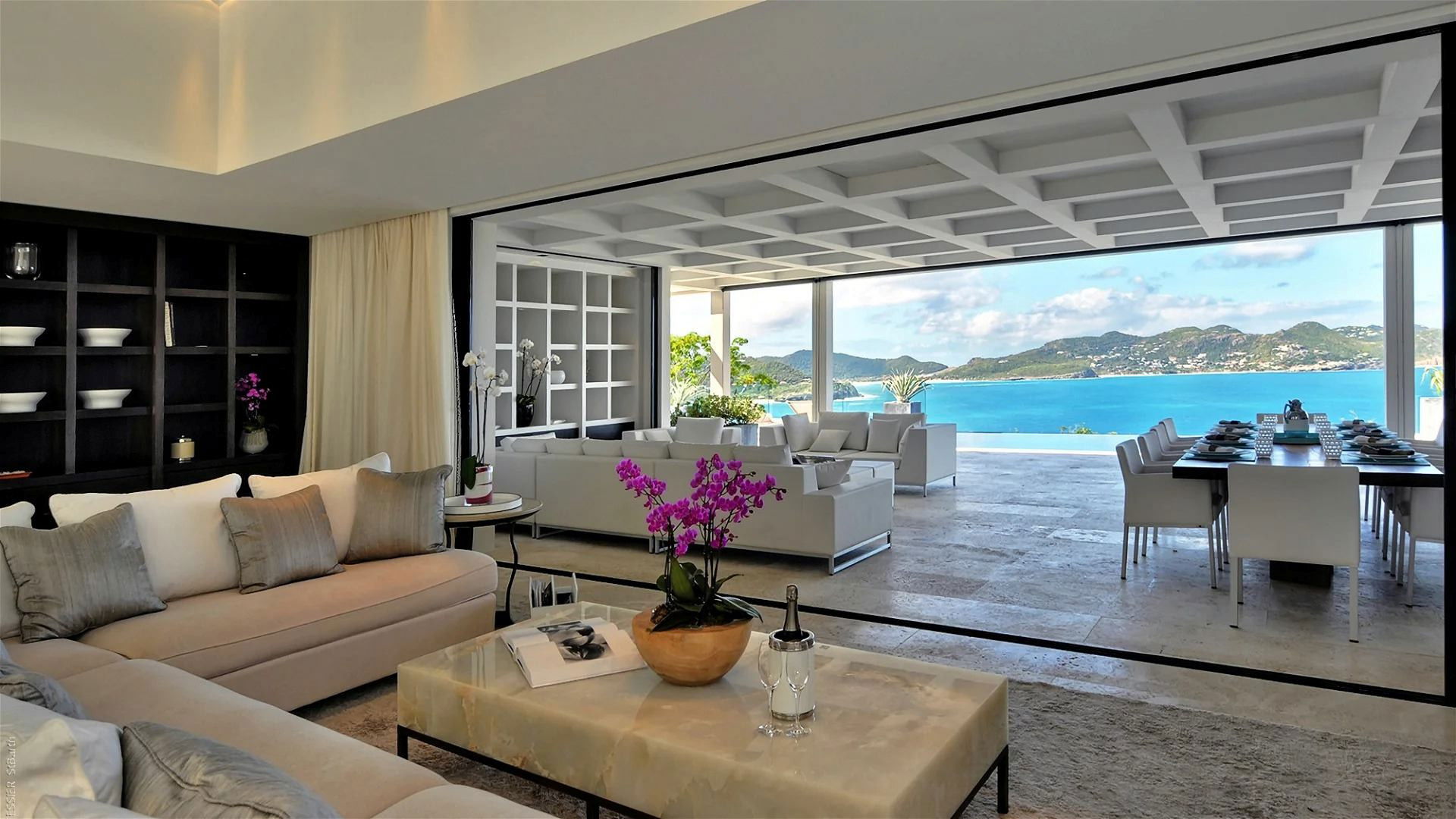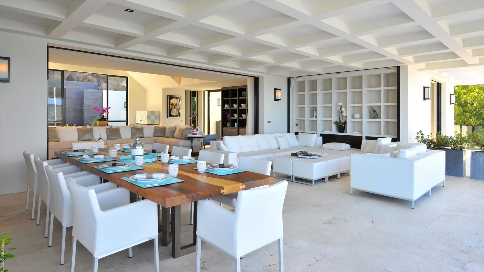 Canapés en cuir blanc, mobilier sur mesure en bois massif, rangements intégrés, linge de maison haut de gamme et finitions irréprochables créent une atmosphère à la fois élégante, lumineuse et résolument raffinée. L’architecture, ouverte sur l’extérieur, invite à profiter pleinement de la douceur de vivre caribéenne dans un cadre exclusif et intimiste.