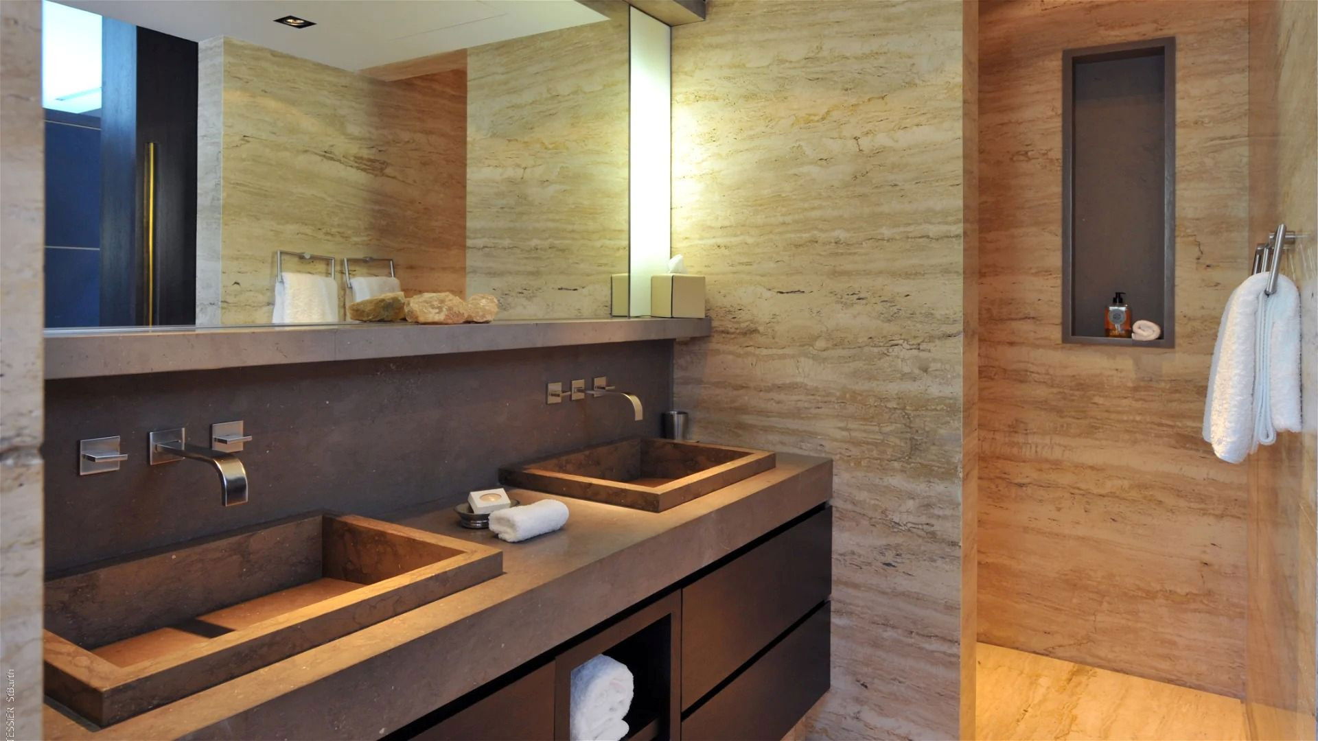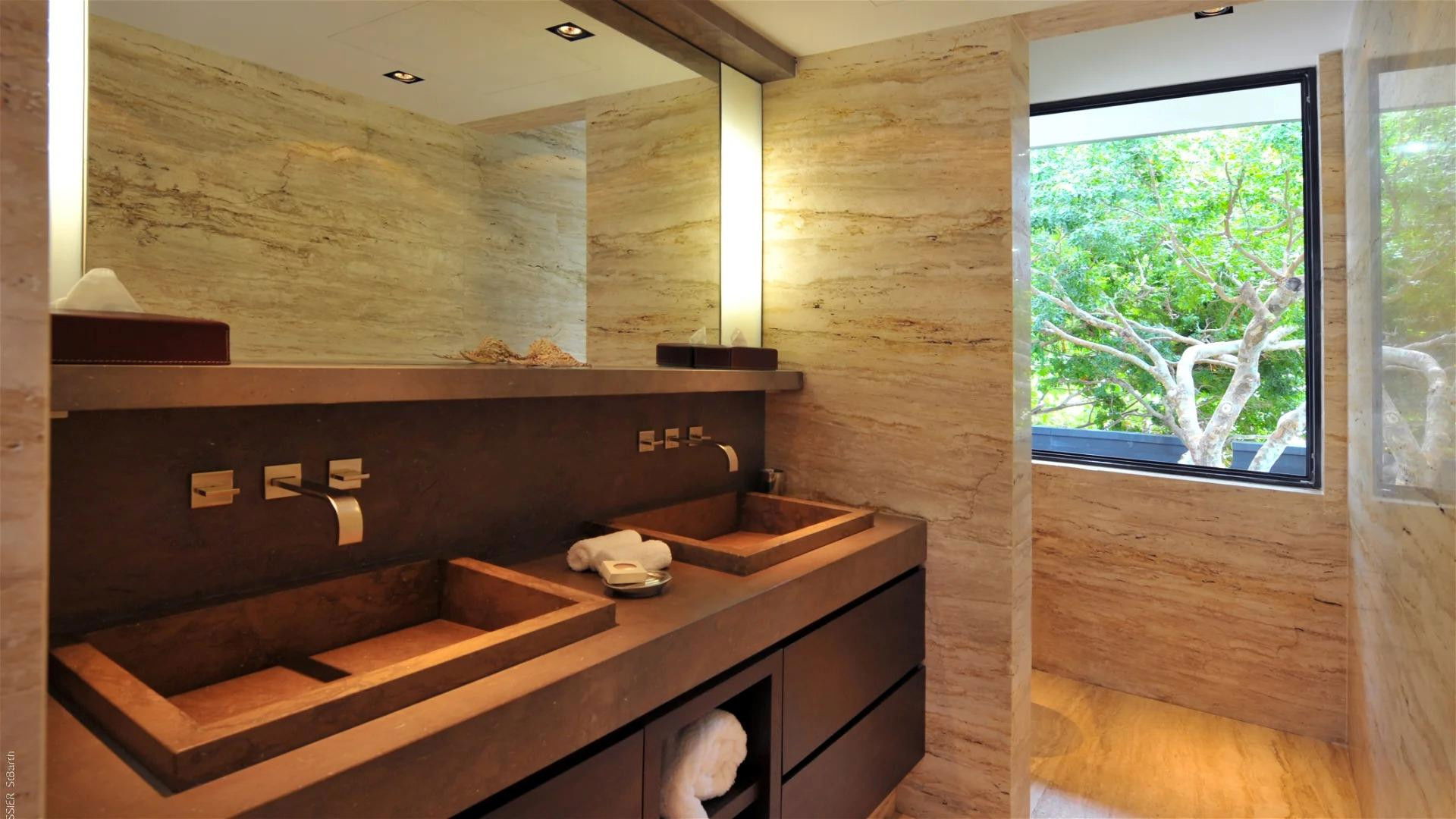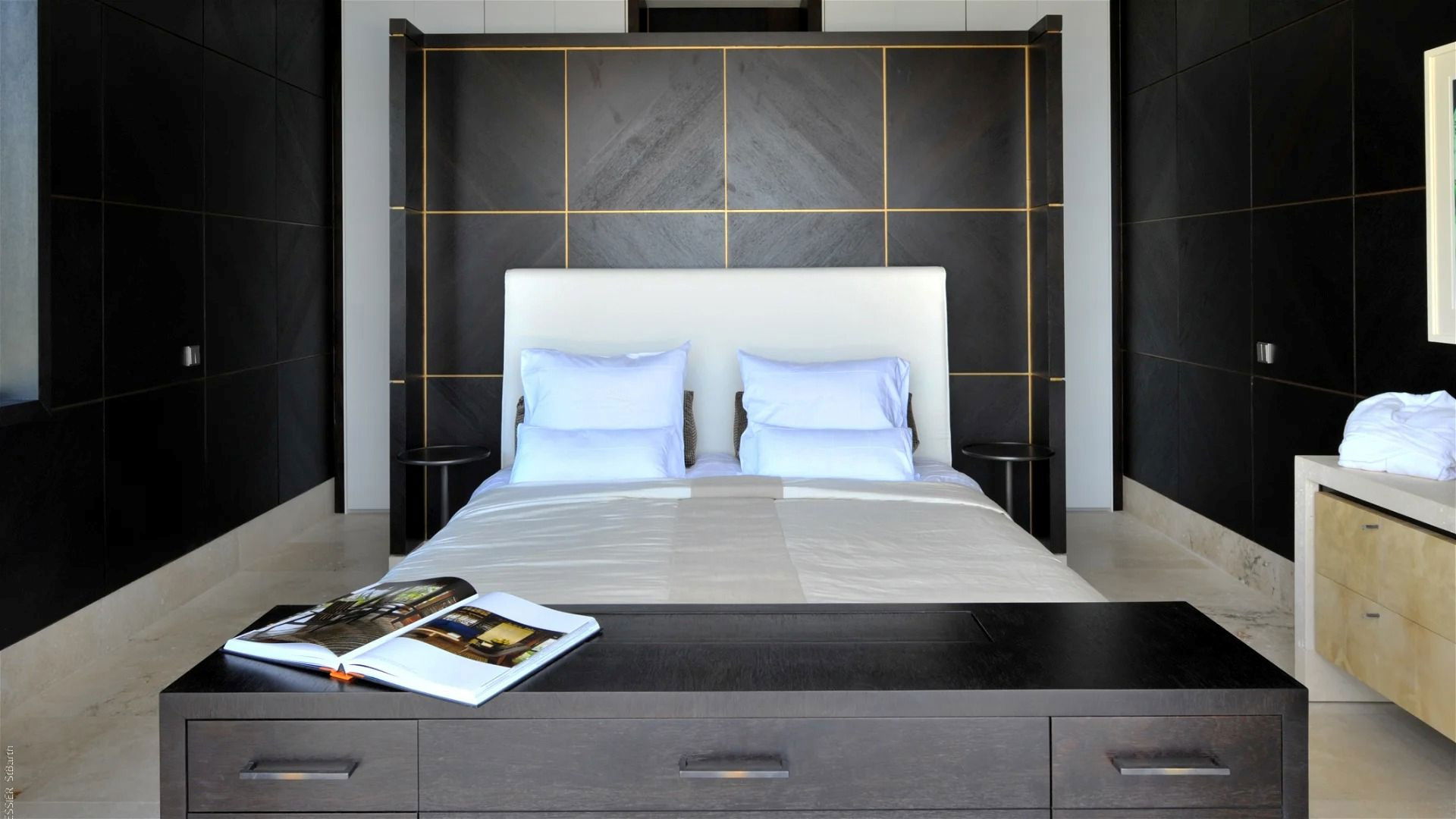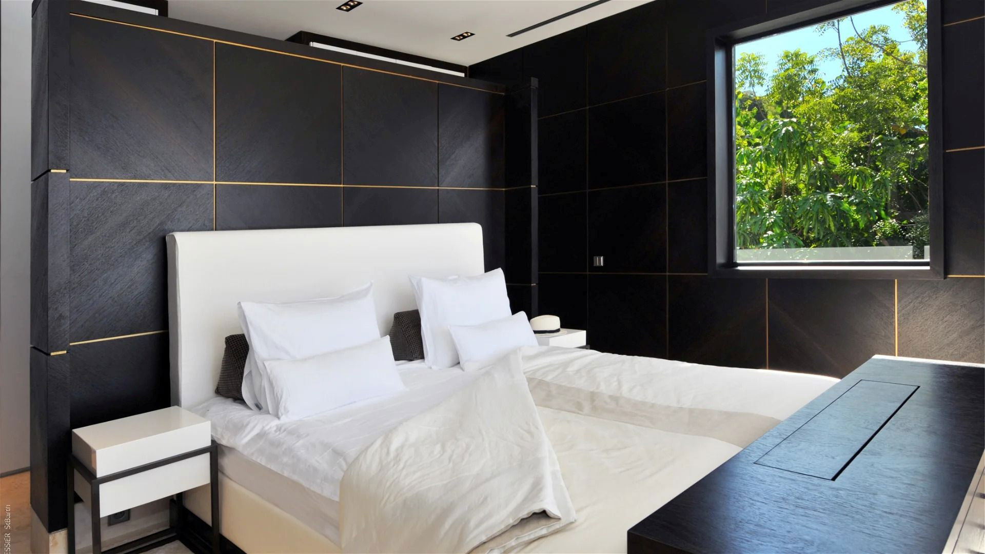 Les cinq chambres de La Petite Sereine présentent un niveau de confort et de raffinement homogène, faisant de cette villa de luxe à Saint-Barth une adresse idéale pour les familles ou les groupes d’amis voyageant ensemble. Chacune dispose d’un lit queen-size, d’une salle de bains attenante avec double vasque et douche à effet pluie, ainsi que d’une télévision discrètement intégrée dans des meubles sur mesure. Deux chambres se situent au niveau supérieur, tandis que les trois autres occupent le niveau inférieur, avec un accès direct à une seconde terrasse et à une piscine encore plus vaste, garantissant intimité et sérénité à chaque hôte.