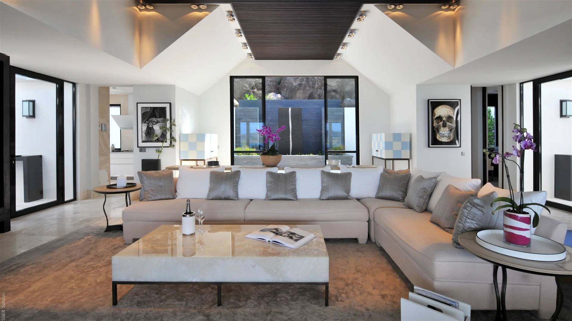 Érigée sur deux niveaux, chacun disposant de sa propre terrasse et de sa piscine privée, La Petite Sereine conjugue parfaitement intimité et convivialité. Le vaste espace central accueille deux salons distincts, idéals pour recevoir ou se détendre en toute élégance. Le salon intérieur, entièrement climatisé, permet de profiter d’un home cinéma de dernière génération, tandis que le salon extérieur s’ouvre sur la terrasse, la piscine et une vue imprenable sur l’océan. À la tombée du jour, un éclairage soigneusement étudié sublime les volumes et crée une atmosphère chaleureuse et sophistiquée.