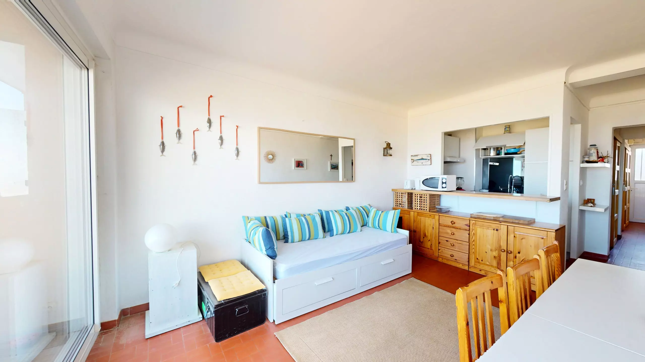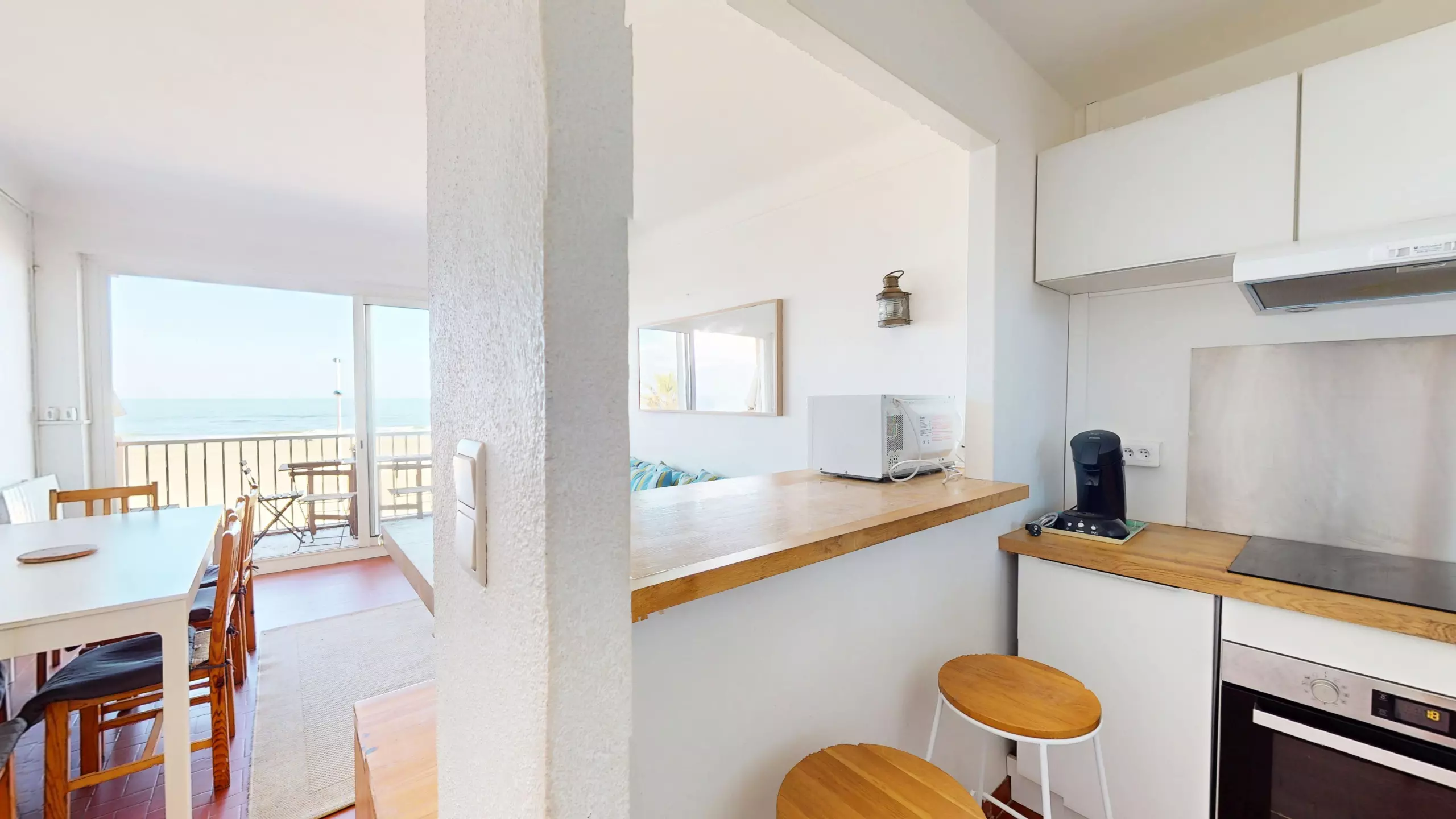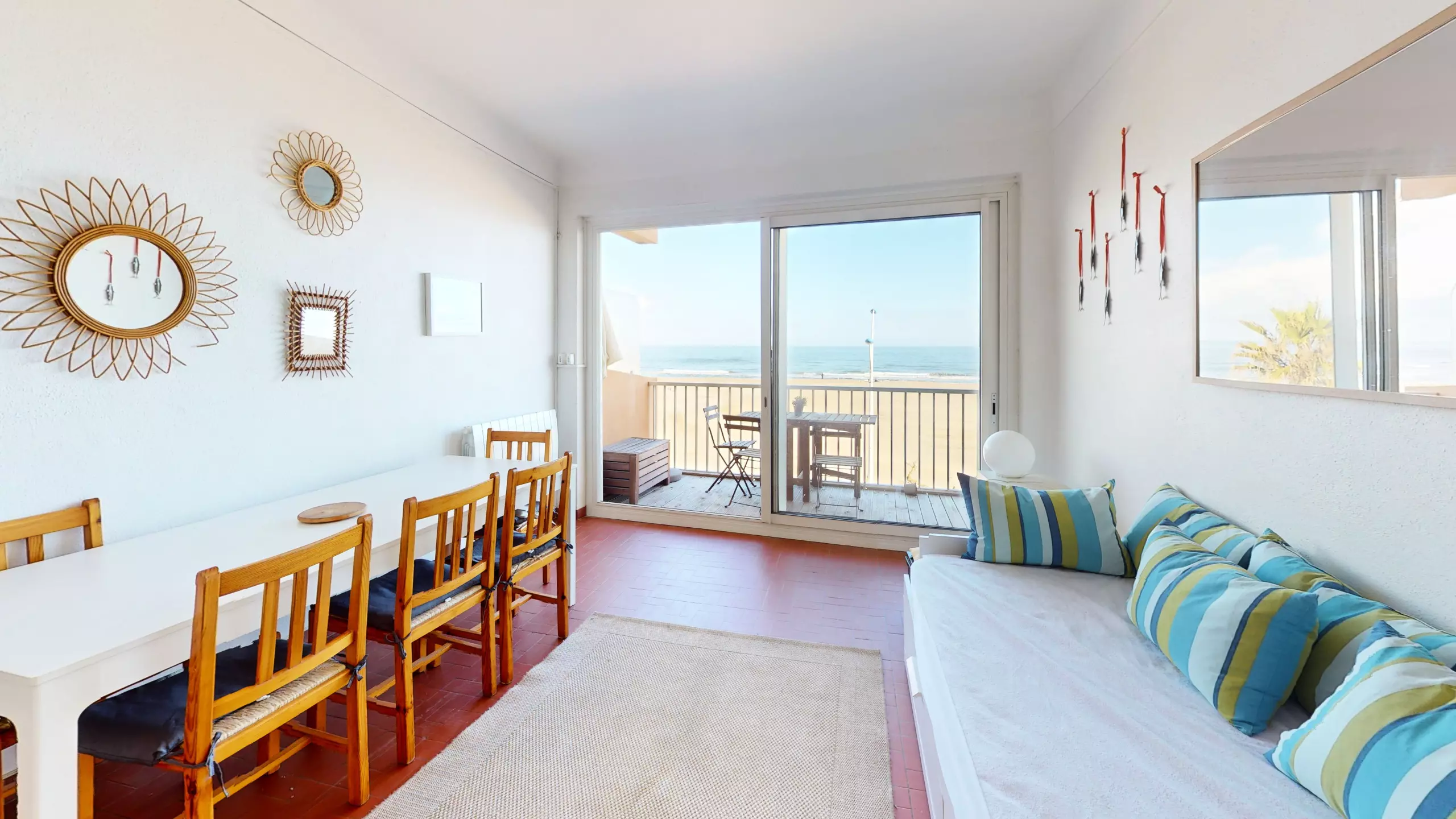 Appartement en front de mer pouvant accueillir jusqu'à 4 adultes, avec la possibilité d'un enfant supplémentaire.