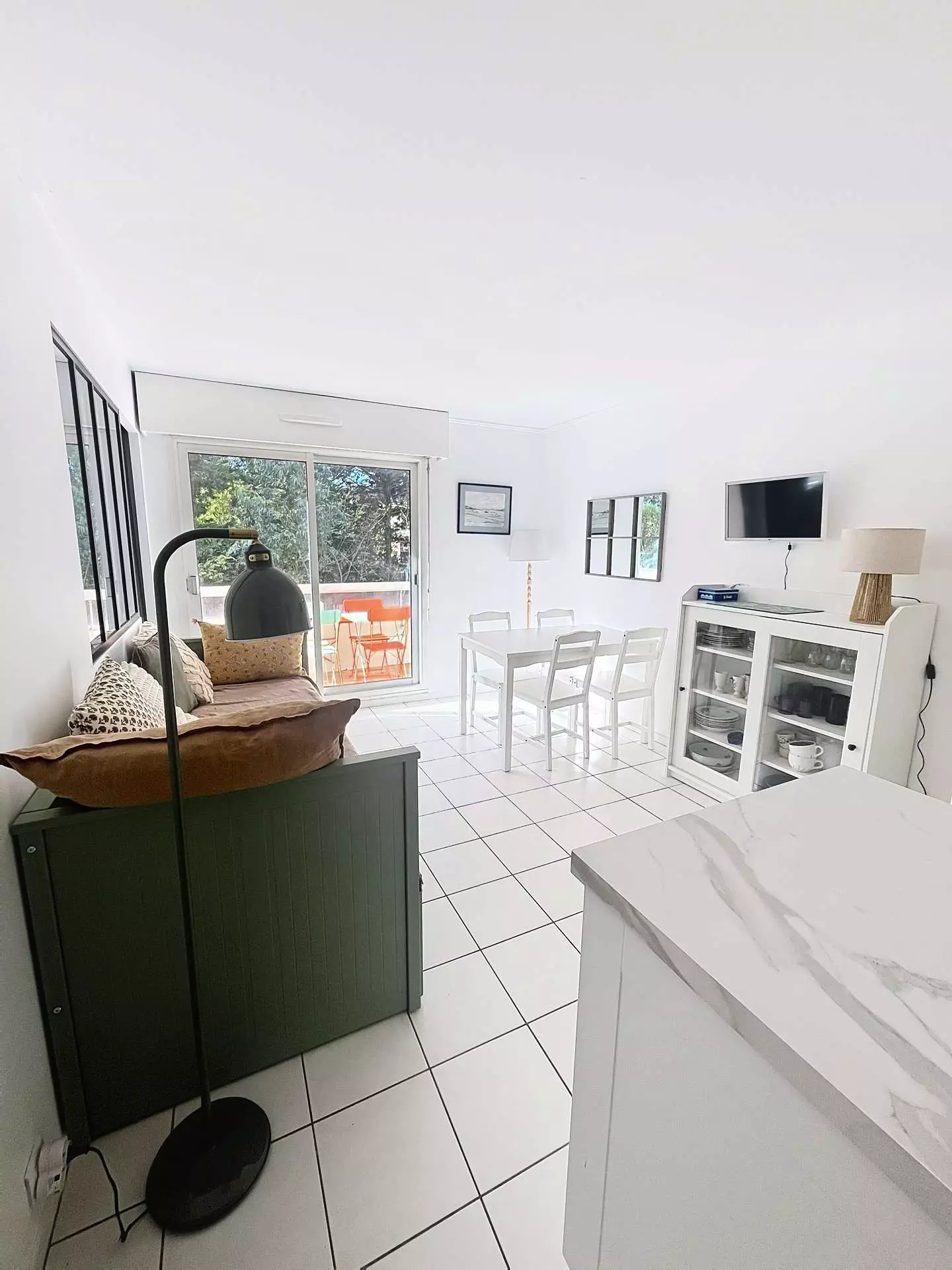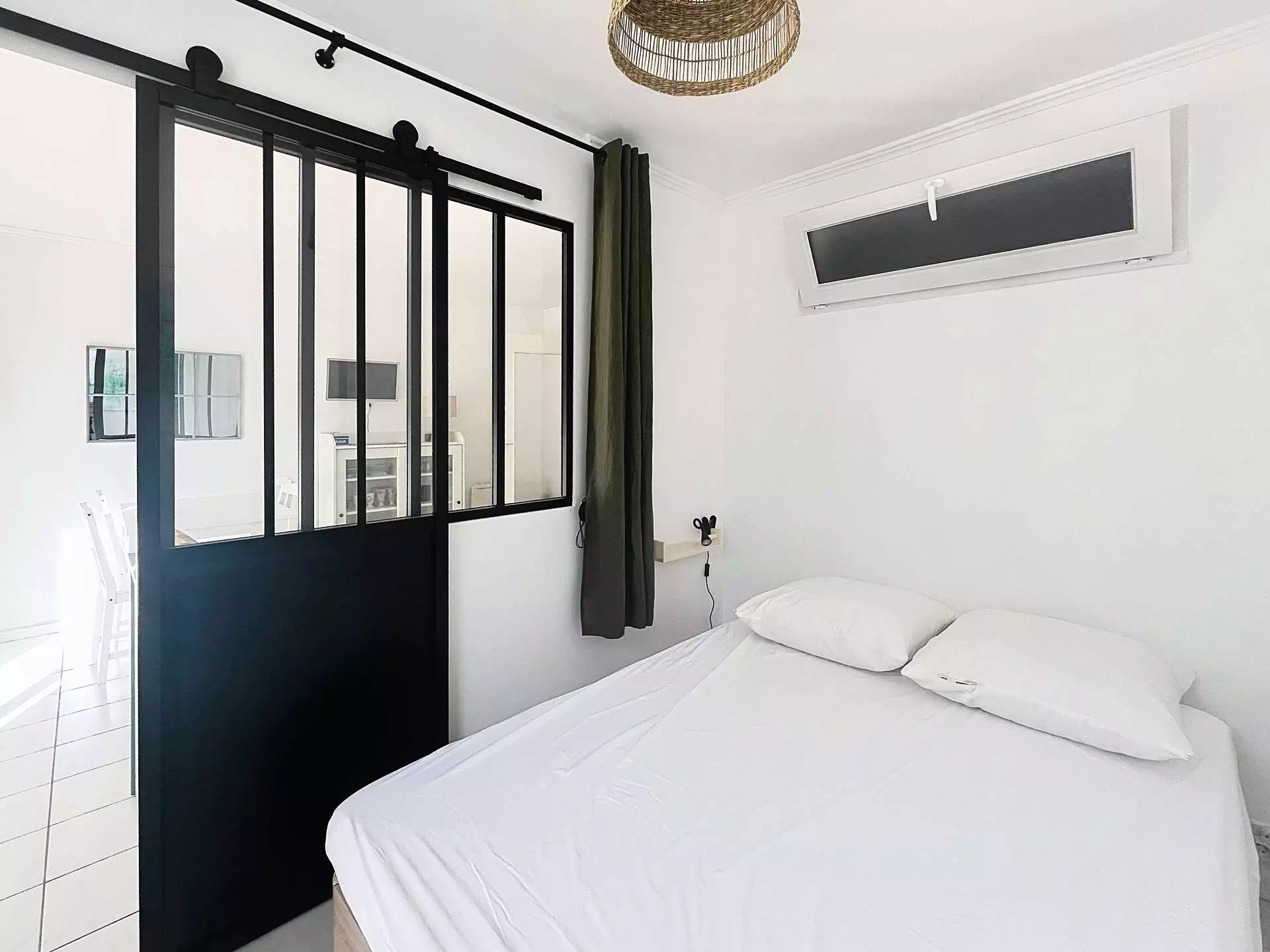 Cet appartement décoré avec gout vous propose : une entrée avec placard, un séjour avec un canapé, une table et 4 chaises, une cuisine ouverte avec tous les indispensables, un coin nuit avec un grand lit (160 X 200), une cabine avec deux lits superposés (90 X 200), une salle d'eau avec un lave-linge et un WC séparé.