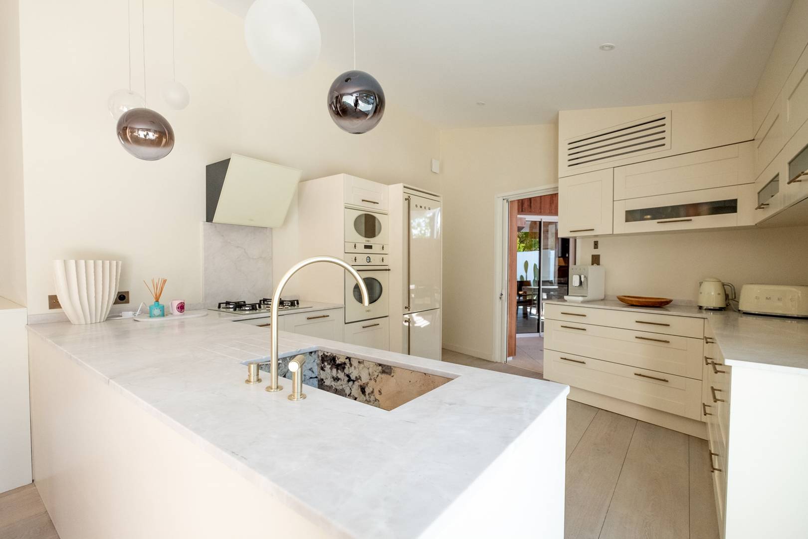 * Une cuisine américaine toute équipée d'électroménager dernier cri