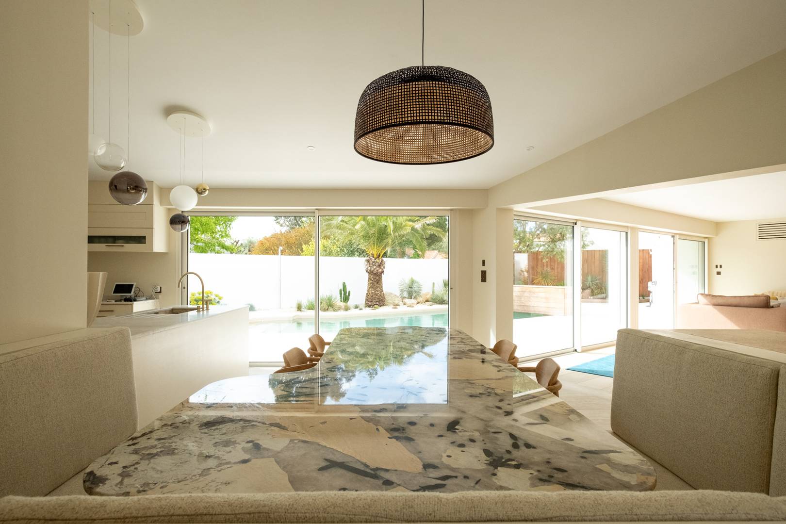 * Un salon avec fenêtres à galandage permettant un côté "dedans / dehors" très agréable