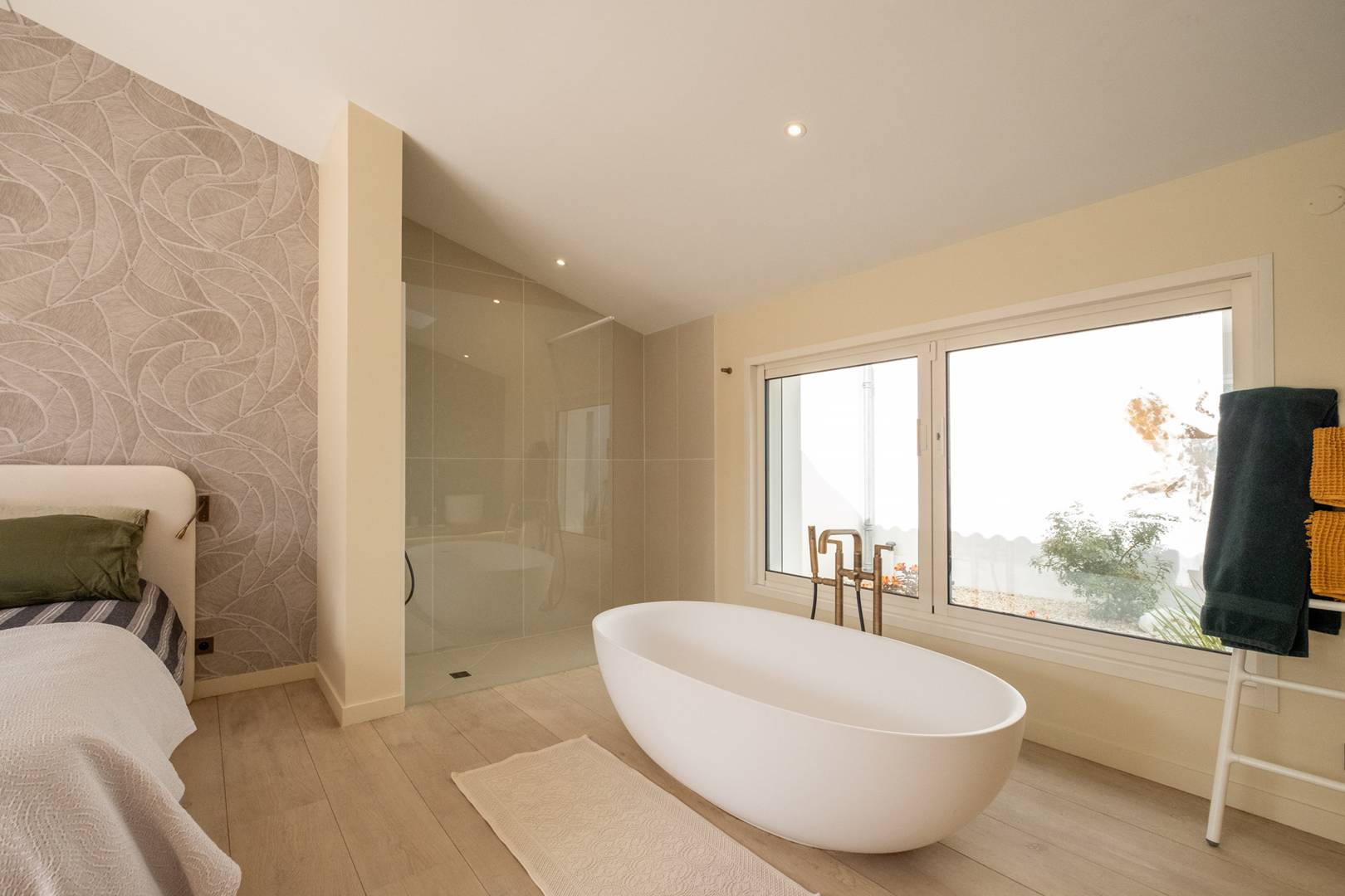 * Une suite parentale (180cm) avec salle de bains (baignoire et douche) ensuite - WC séparé