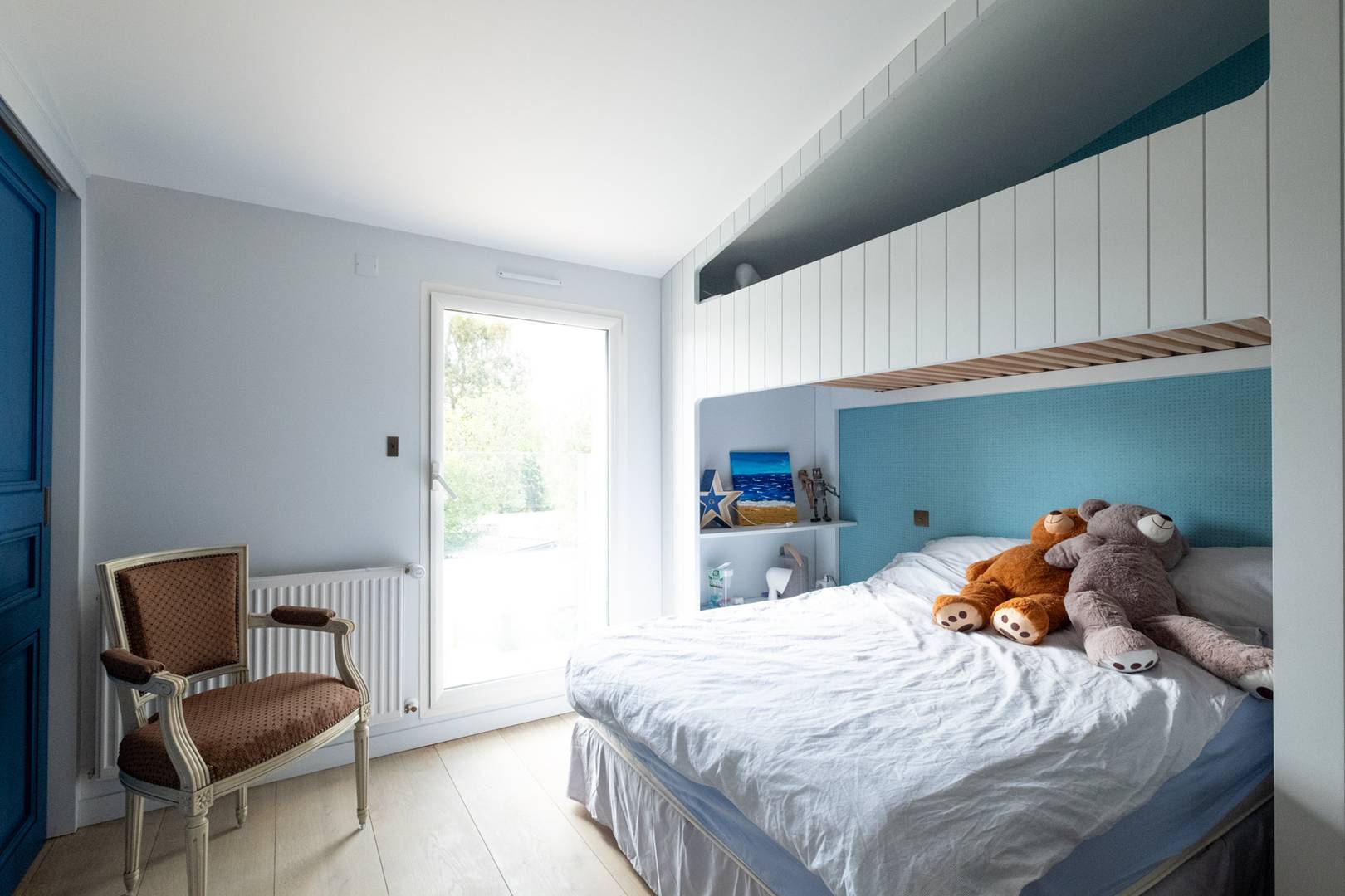 * Une chambre enfant avec un lit double de 140cm et un lit superposé cabane de 90cm et sa salle d'eau attenante