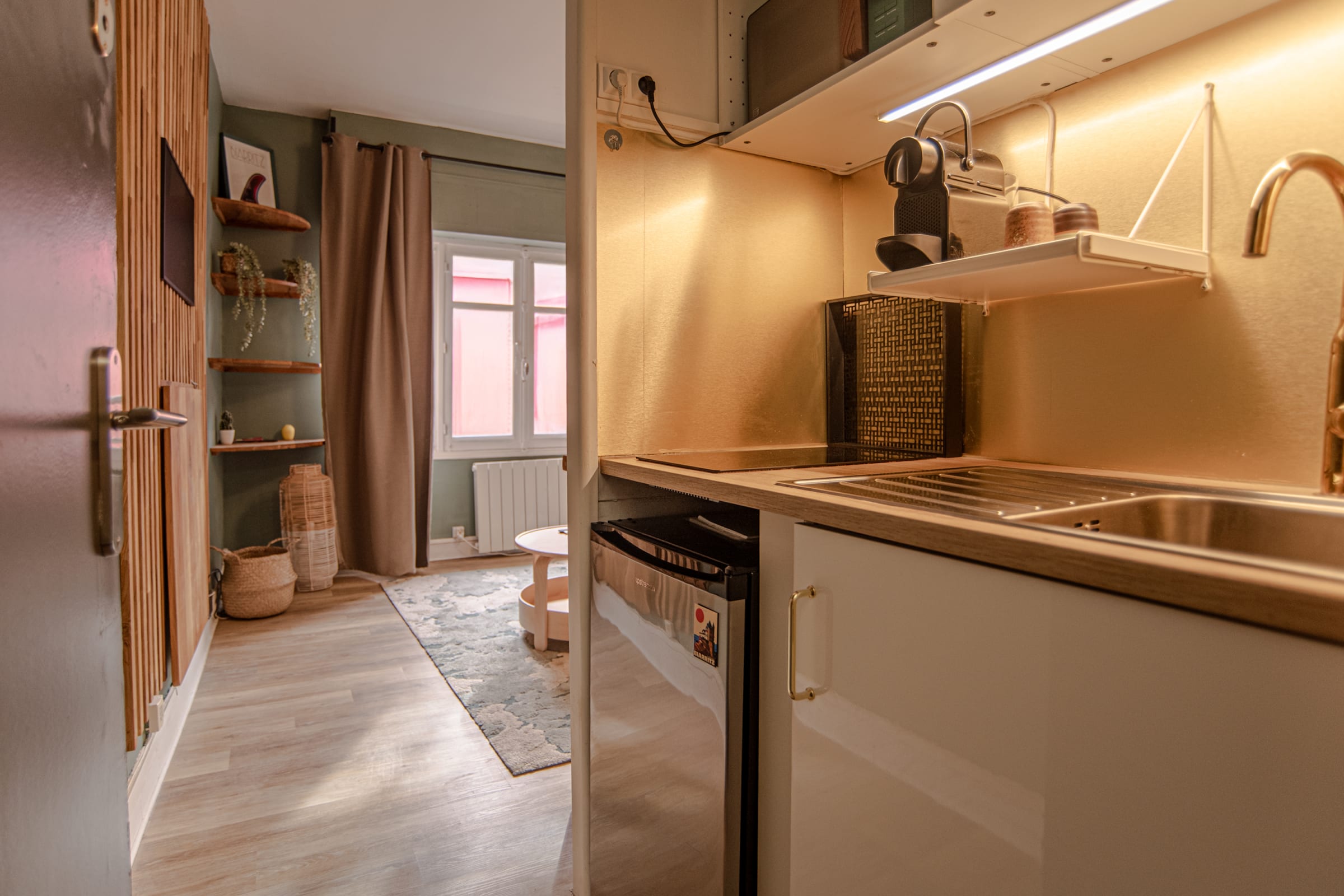 Bienvenue dans ce studio élégant et confortable de 17 m², situé au rez-de-chaussée et pouvant accueillir jusqu'à 2 personnes. Ce logement comprend :