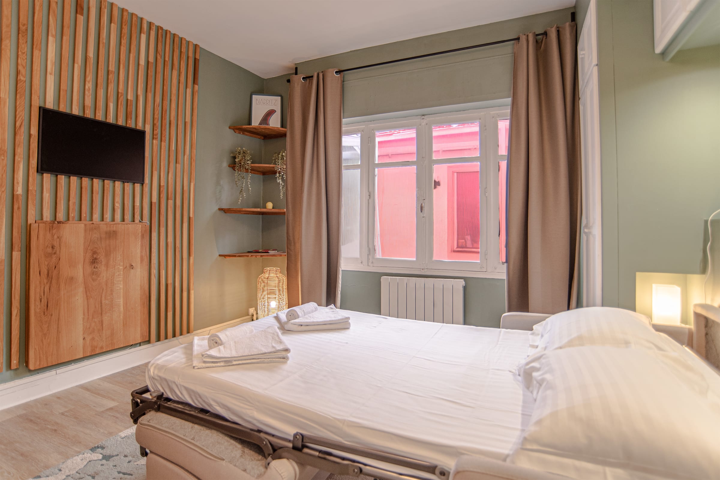 Situé en plein centre de Biarritz, ce studio vous offre un accès facile aux nombreuses attractions de la ville. À quelques pas, vous trouverez la célèbre Grande Plage de Biarritz, parfaite pour profiter du soleil et des vagues. Le quartier regorge de boutiques, de cafés et de restaurants raffinés, où vous pourrez savourer la délicieuse cuisine locale. Ne manquez pas de visiter le Rocher de la Vierge pour une vue imprenable sur la côte. Biarritz est également un point de départ idéal pour explorer les villes voisines telles que Bayonne et Saint-Jean-de-Luz.
