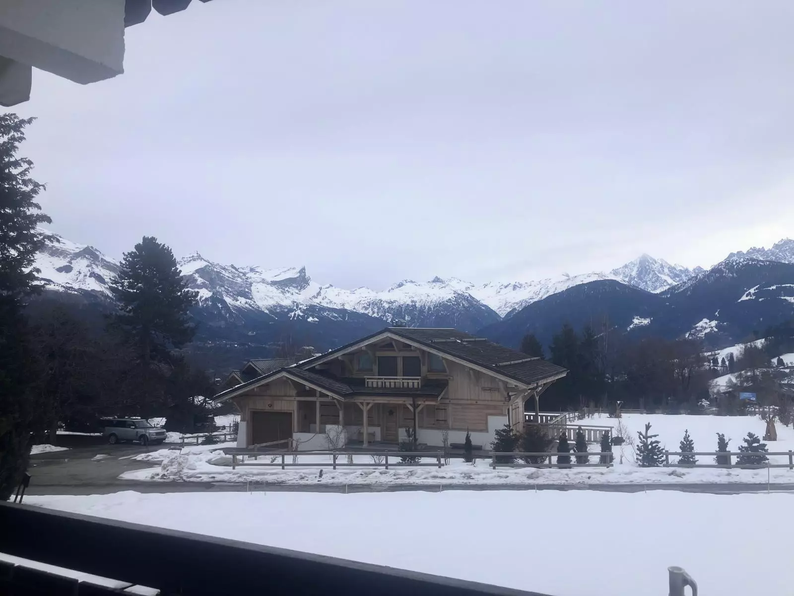 L’appartement est au 1er étage. Il offre une exposition Sud-Est, avec vue sur le Mont-Blanc et dispose de deux balcons.