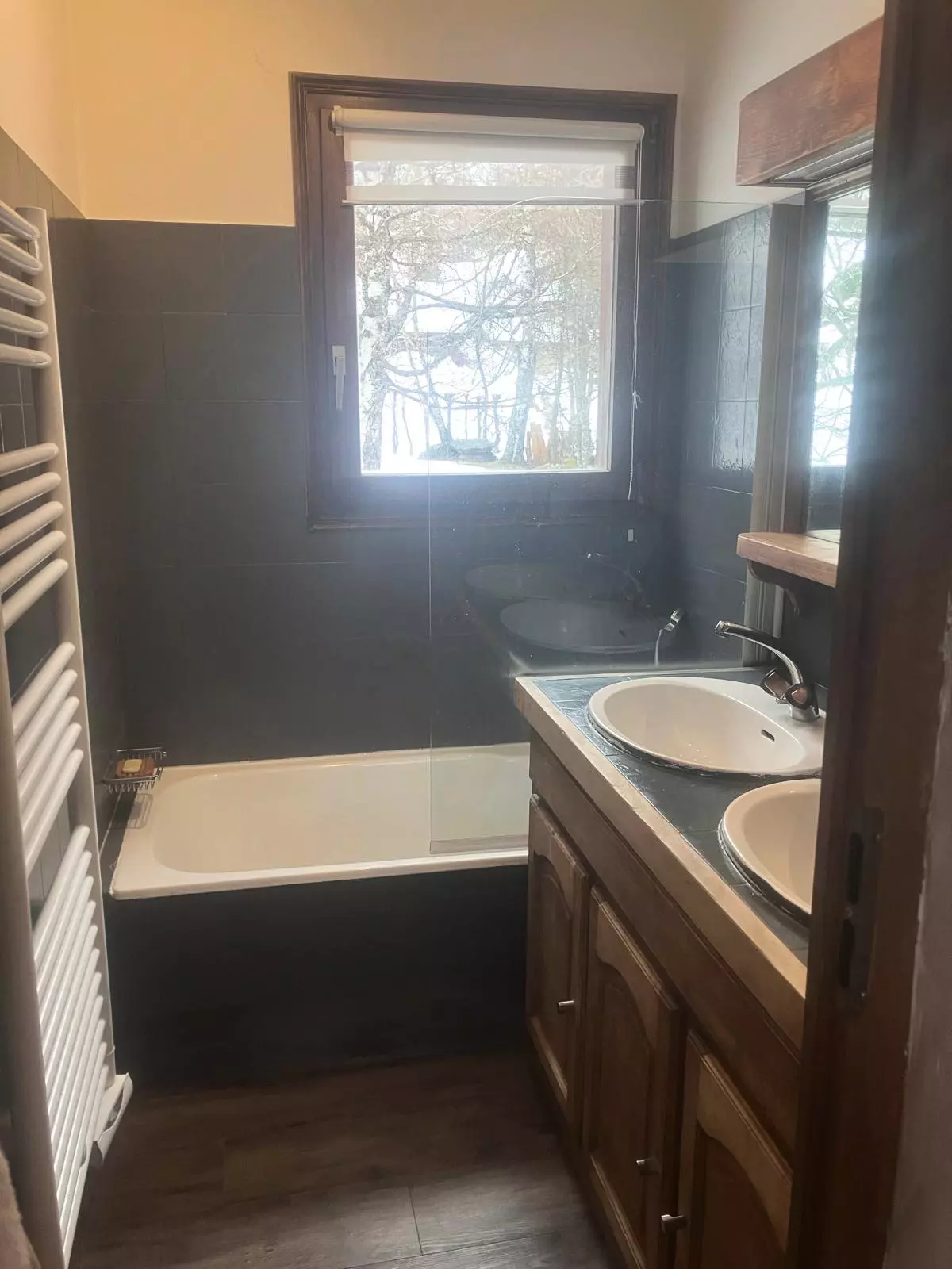 - Salle de bain avec baignoire, lavabo doubles vasques