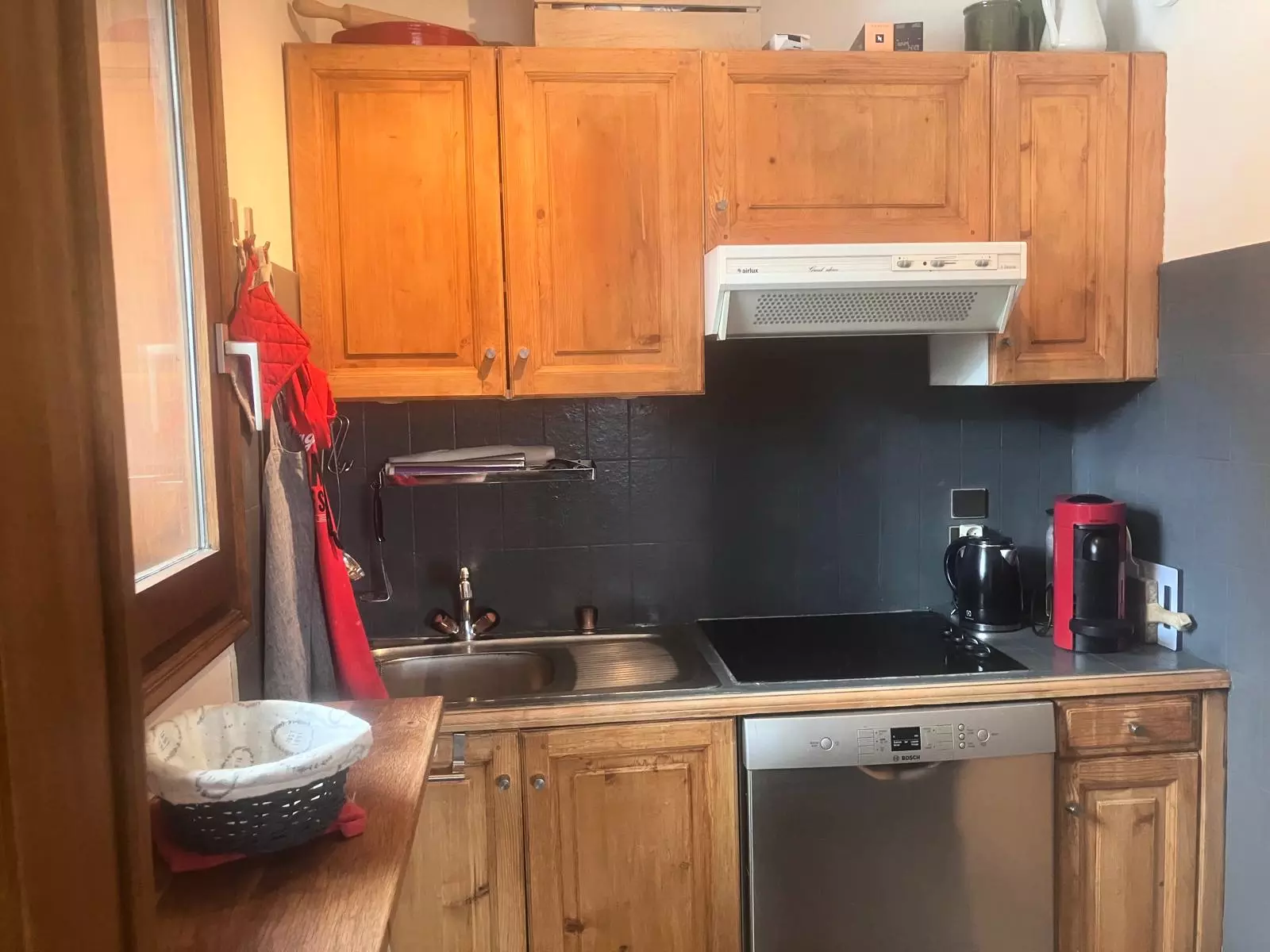 - Cuisine équipée avec 4 plaques électriques, four, lave-vaisselle, réfrigérateur, machine à café nespress.