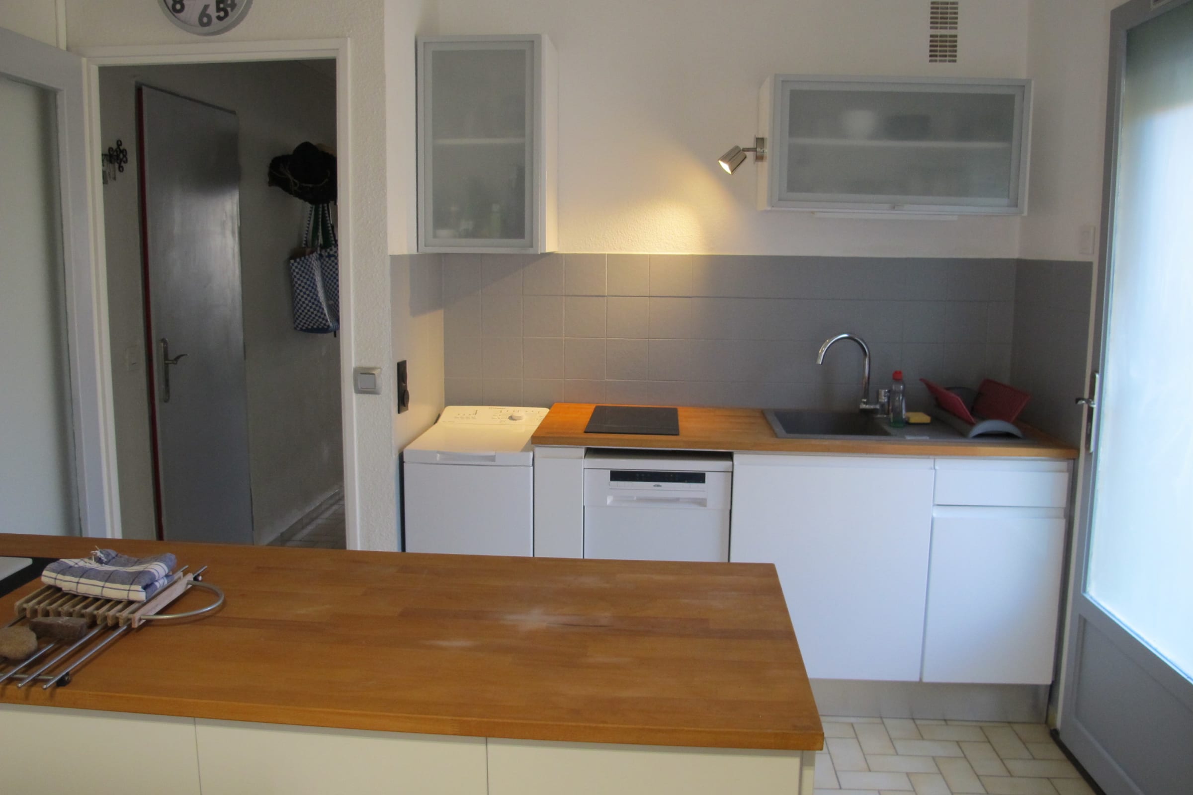 Cuisine toute équipée avec tout ce qu'il faut (plaque, four, four micro-onde, cafetière, bouilloire, grille-pain, lave-vaisselle, lave-linge,sèche-linge..).