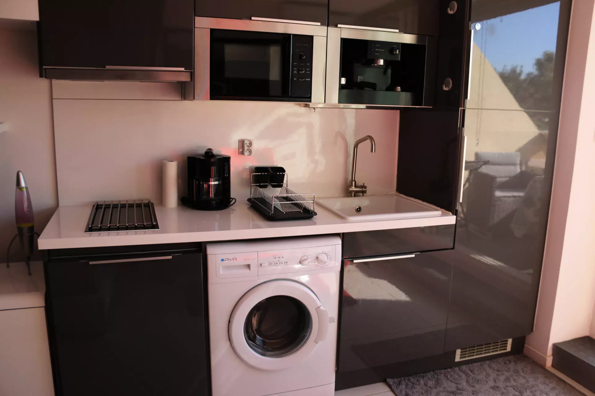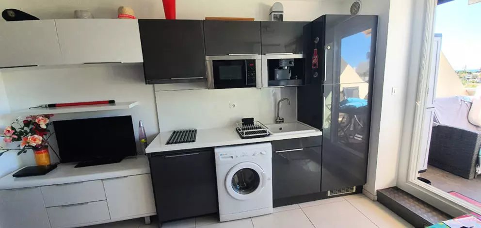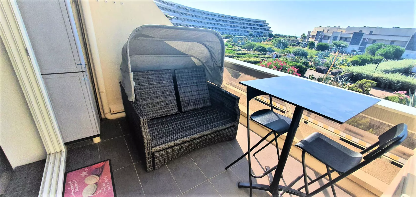 Studio climatisé pour 2 personnes, situé à Héliopolis entrée J, au 1er étage avec ascenseur, côté intérieur. Séjour avec un lit coffre en 160 cm. Coin cuisine avec lave-vaisselle, lave-linge, micro-ondes, cafetière... Salle d'eau avec WC. Terrasse orientée sud. coffre fort, WIFI....
