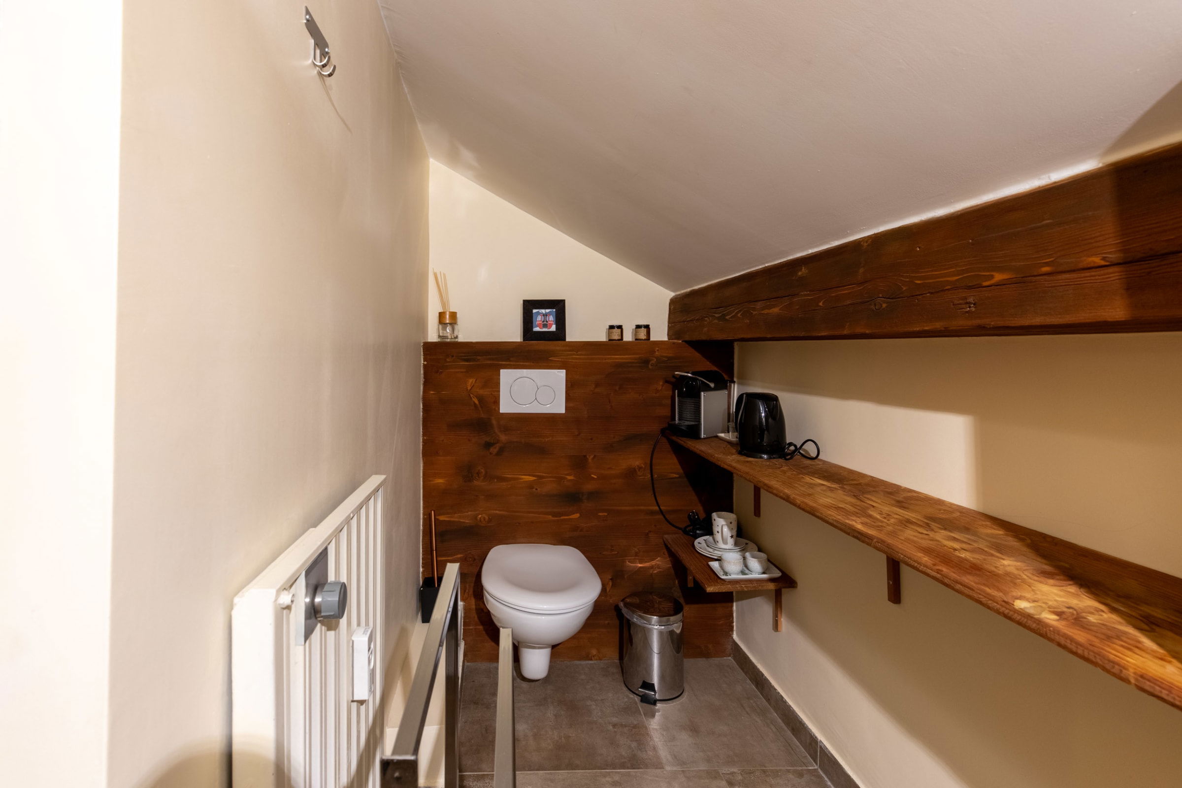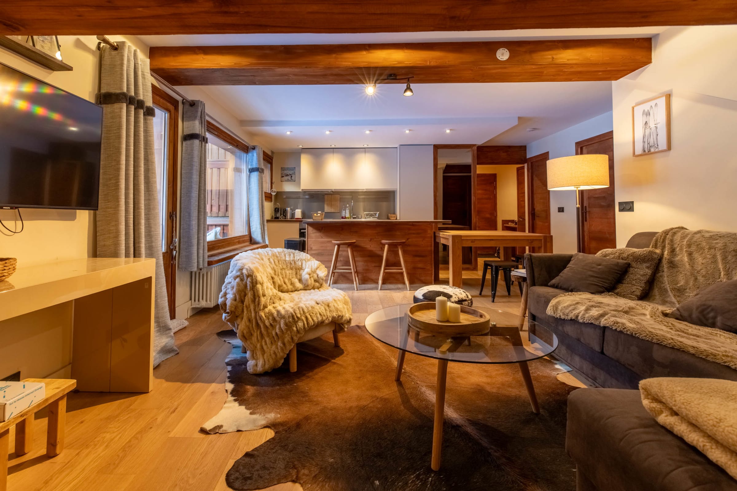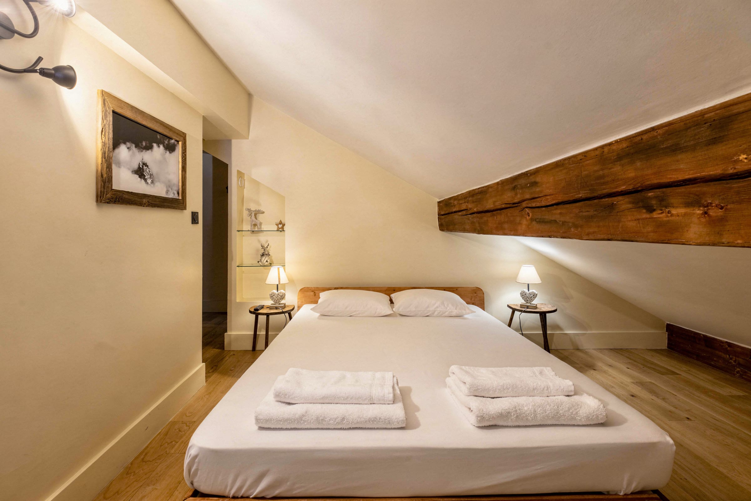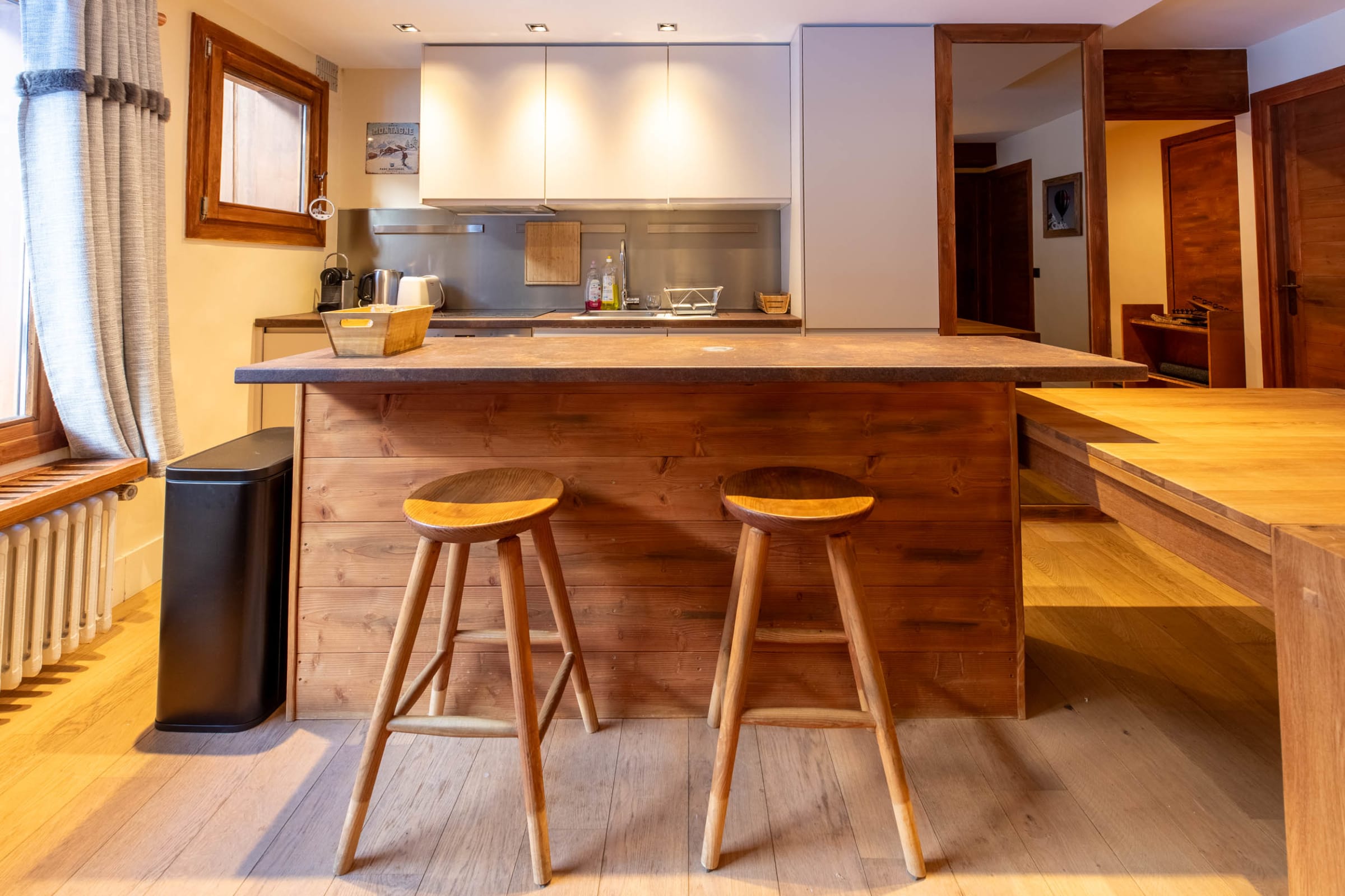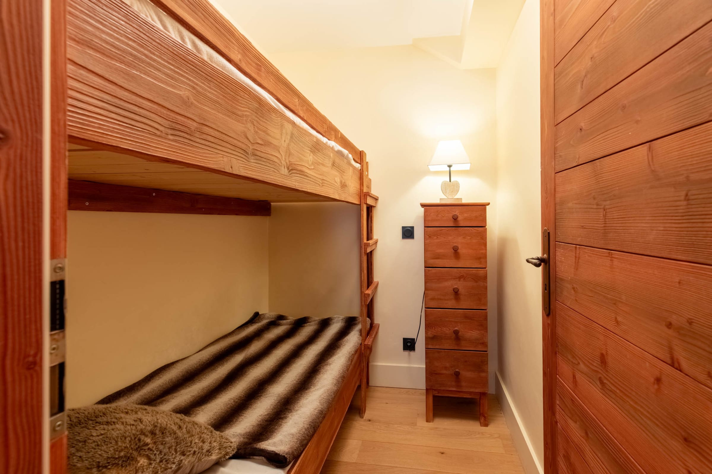 32-46 est un duplex atypique organisé en deux parties situées à un étage de différence, idéal pour partager un séjour tout en gardant de l’intimité. L’appartement principal comprend une chambre master avec lit double 160 cm, un coin nuit type cabine avec lits superposés (sans fenêtre), une salle de bain, des WC séparés, ainsi qu’une cuisine ouverte sur le salon donnant accès à une petite terrasse extérieure. À l’autre niveau, un second espace indépendant propose une chambre double et une salle d’eau avec WC. Le logement est tout équipé, avec wifi et lave-linge séchant, et vous disposez également d’un skiroom partagé pour ranger votre matériel.
