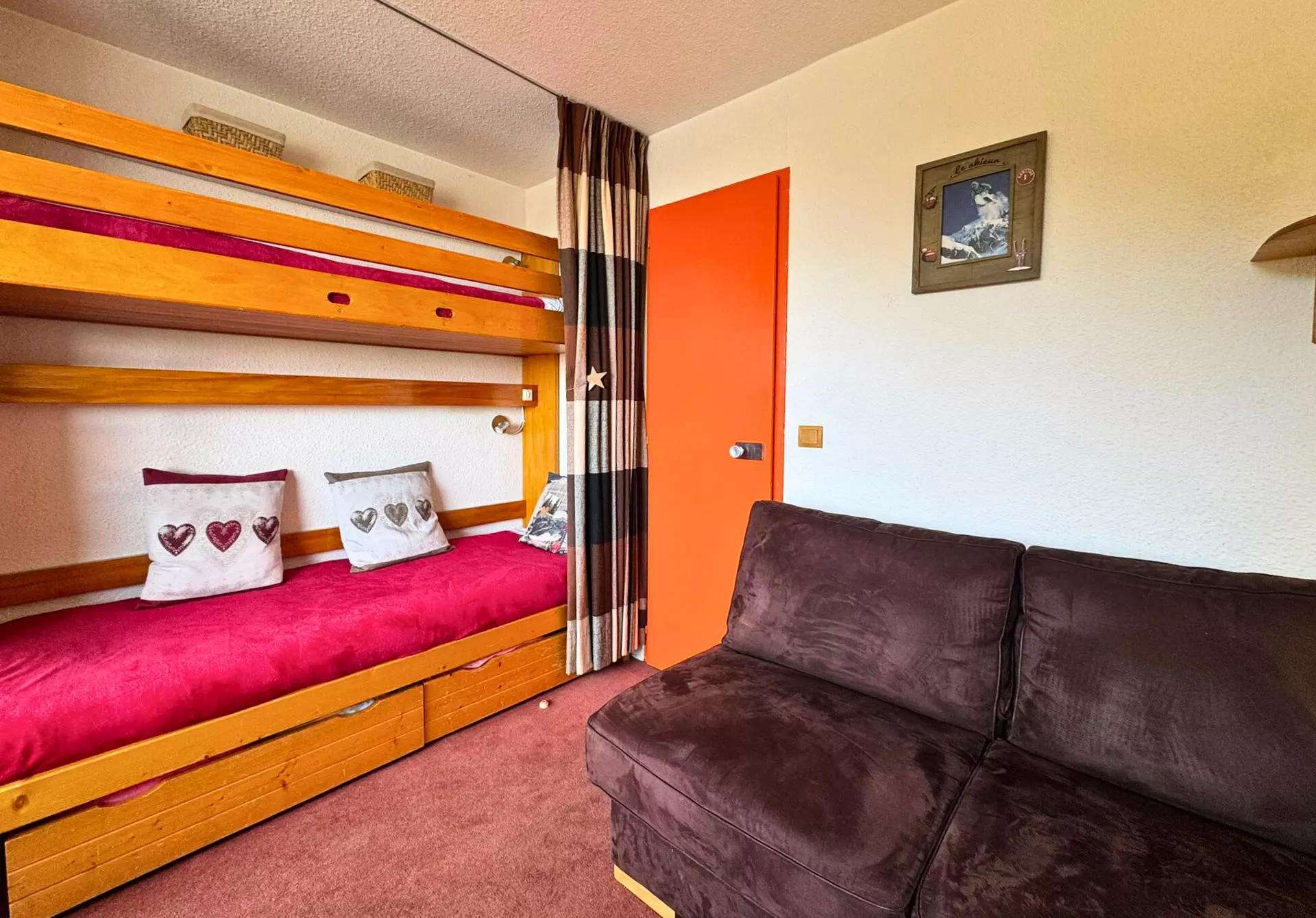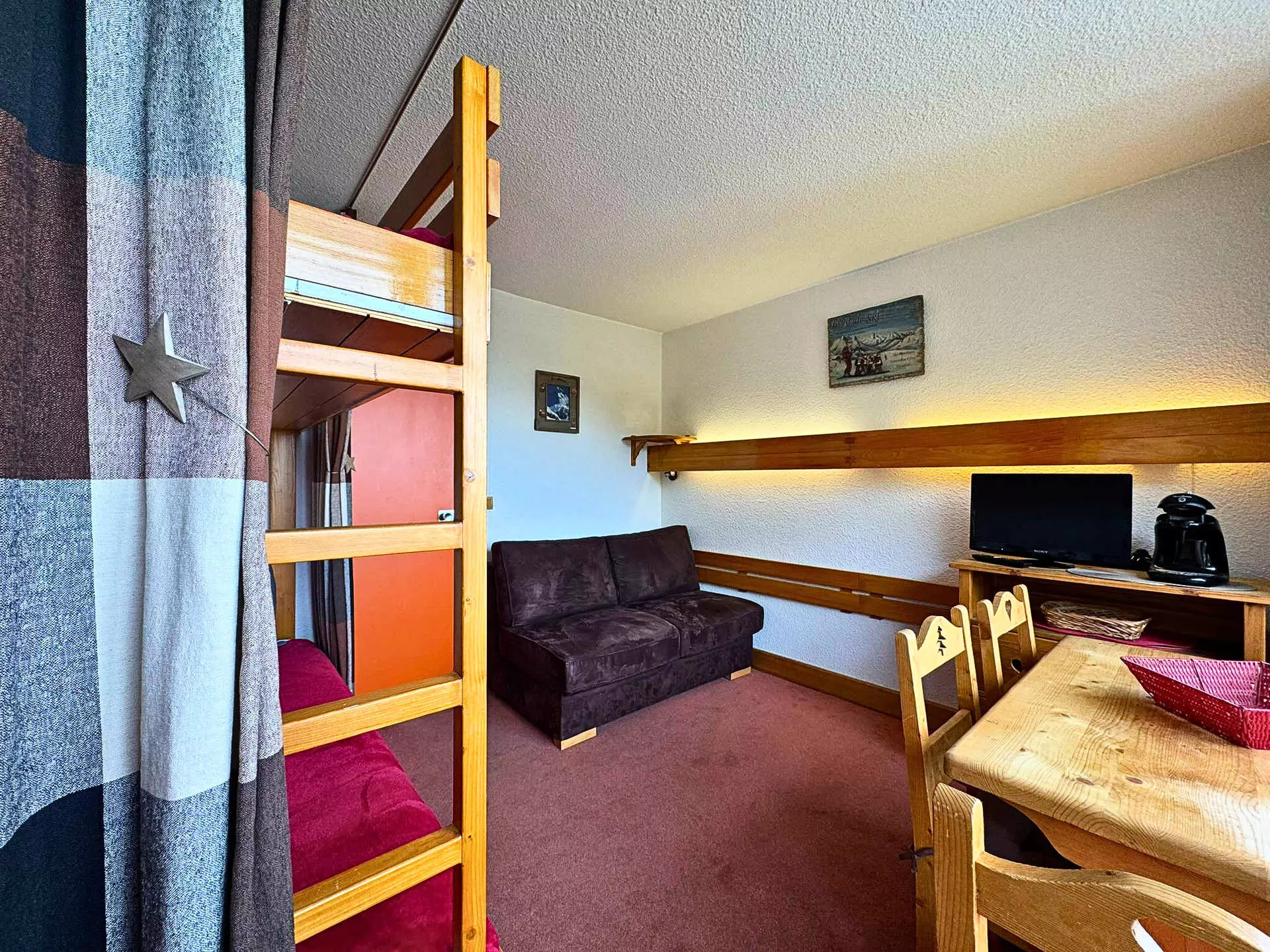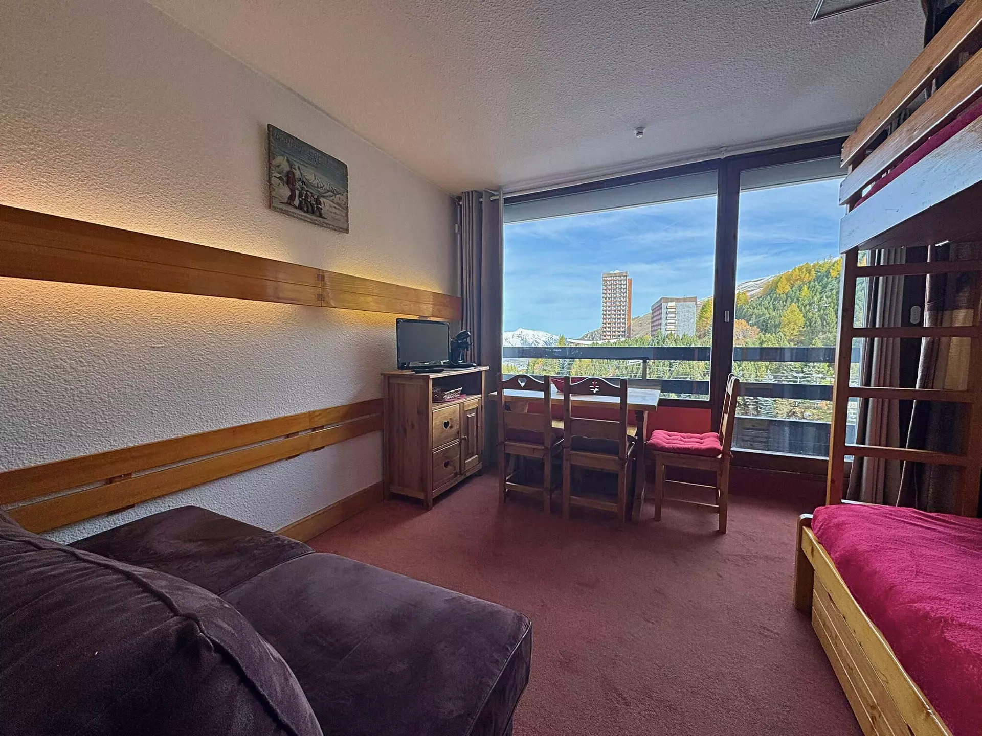 Séjour : 1 banquette lit (80x190cm), 1 canapé lit rapido (120x190cm), télévision