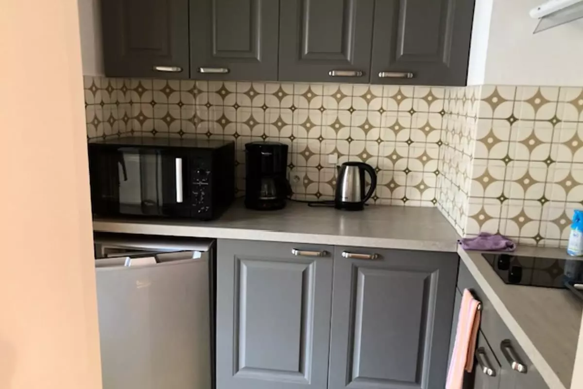 - Cuisine indépendante toute équipée avec micro-onde, 2 plaques de cuisson, petit frigo, toaster