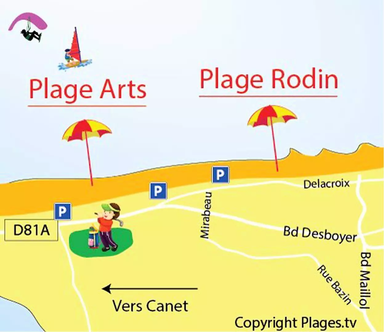 Appartement au pied des commerces, du marché (Mardi et Vendredi) et de la plage Rodin.