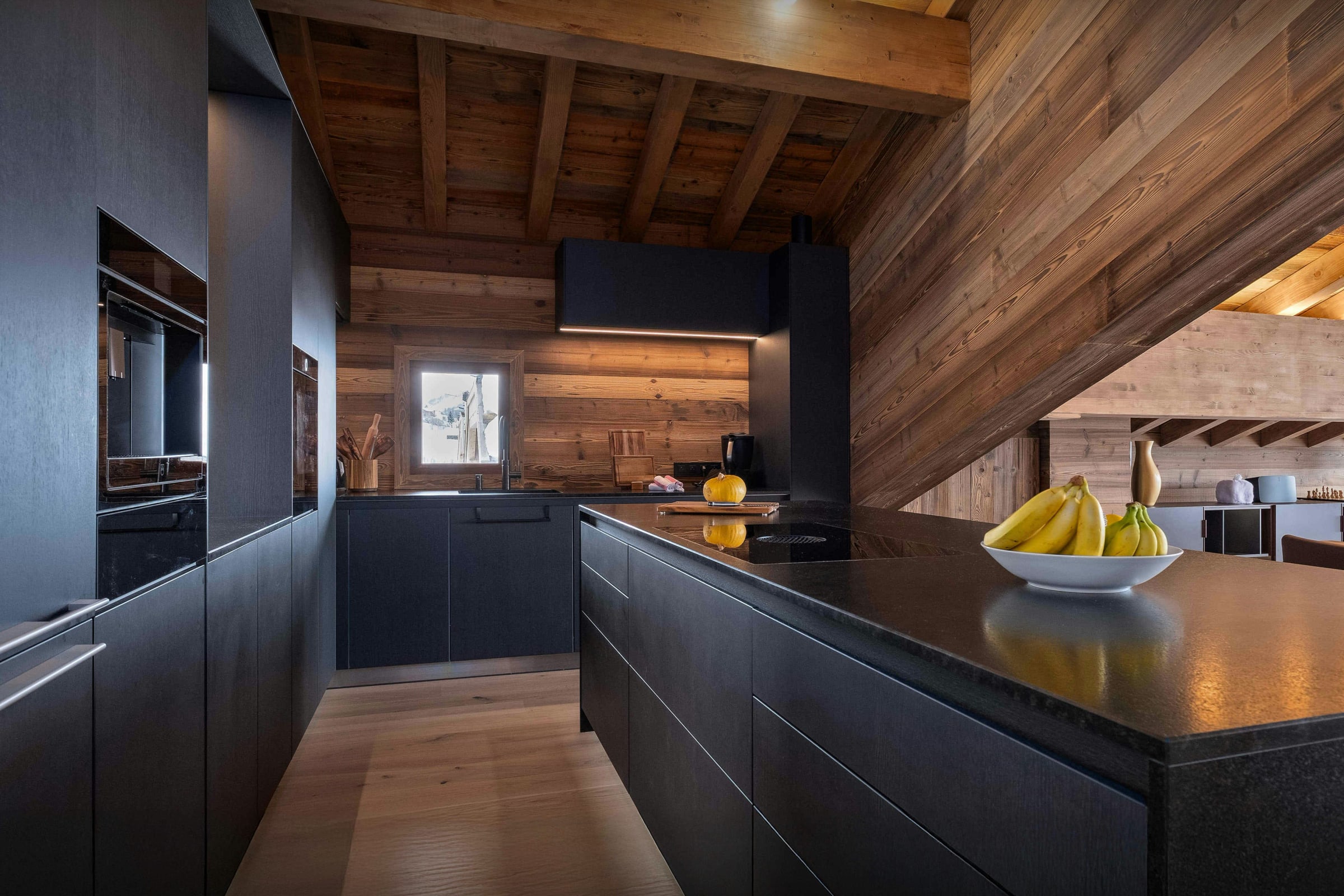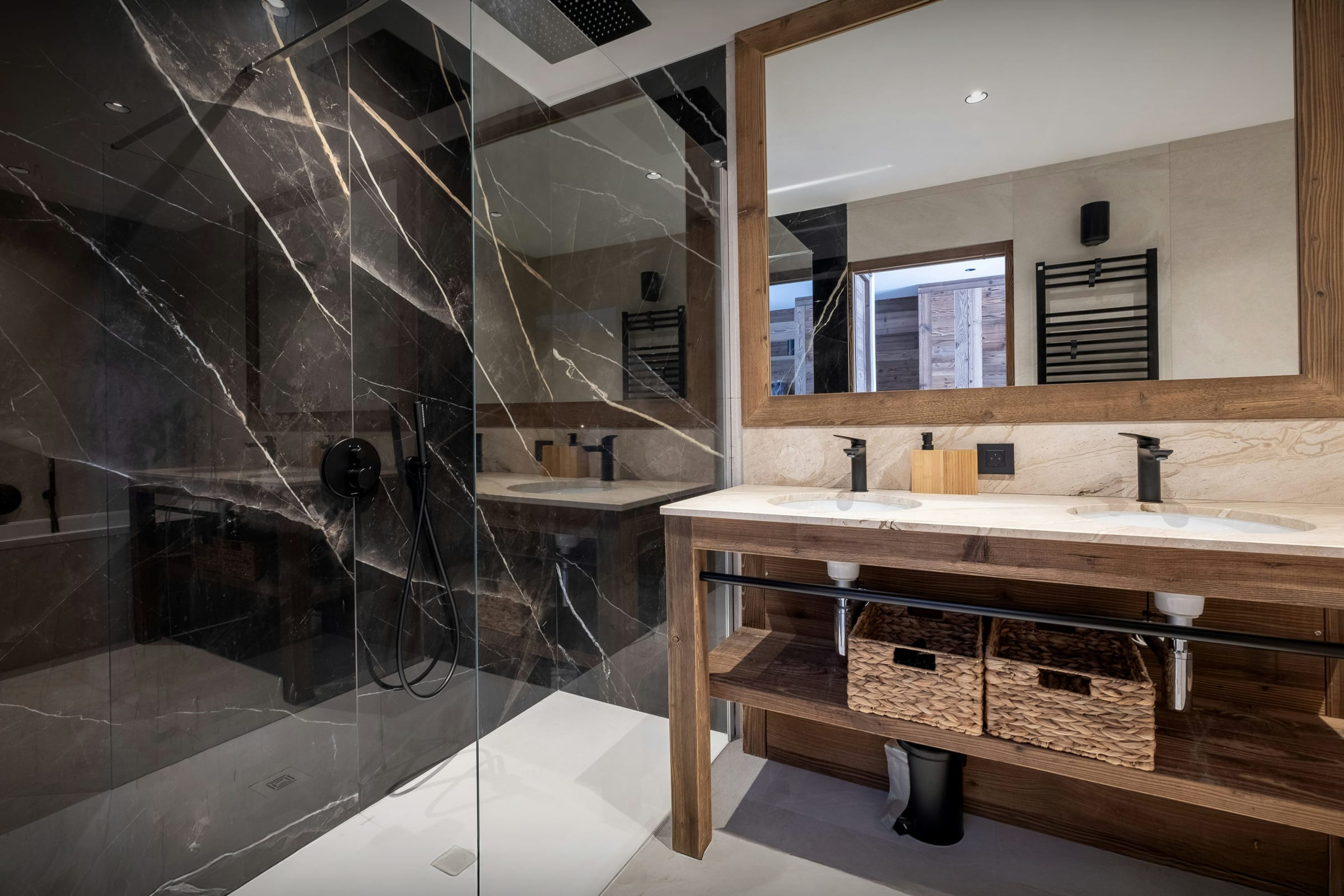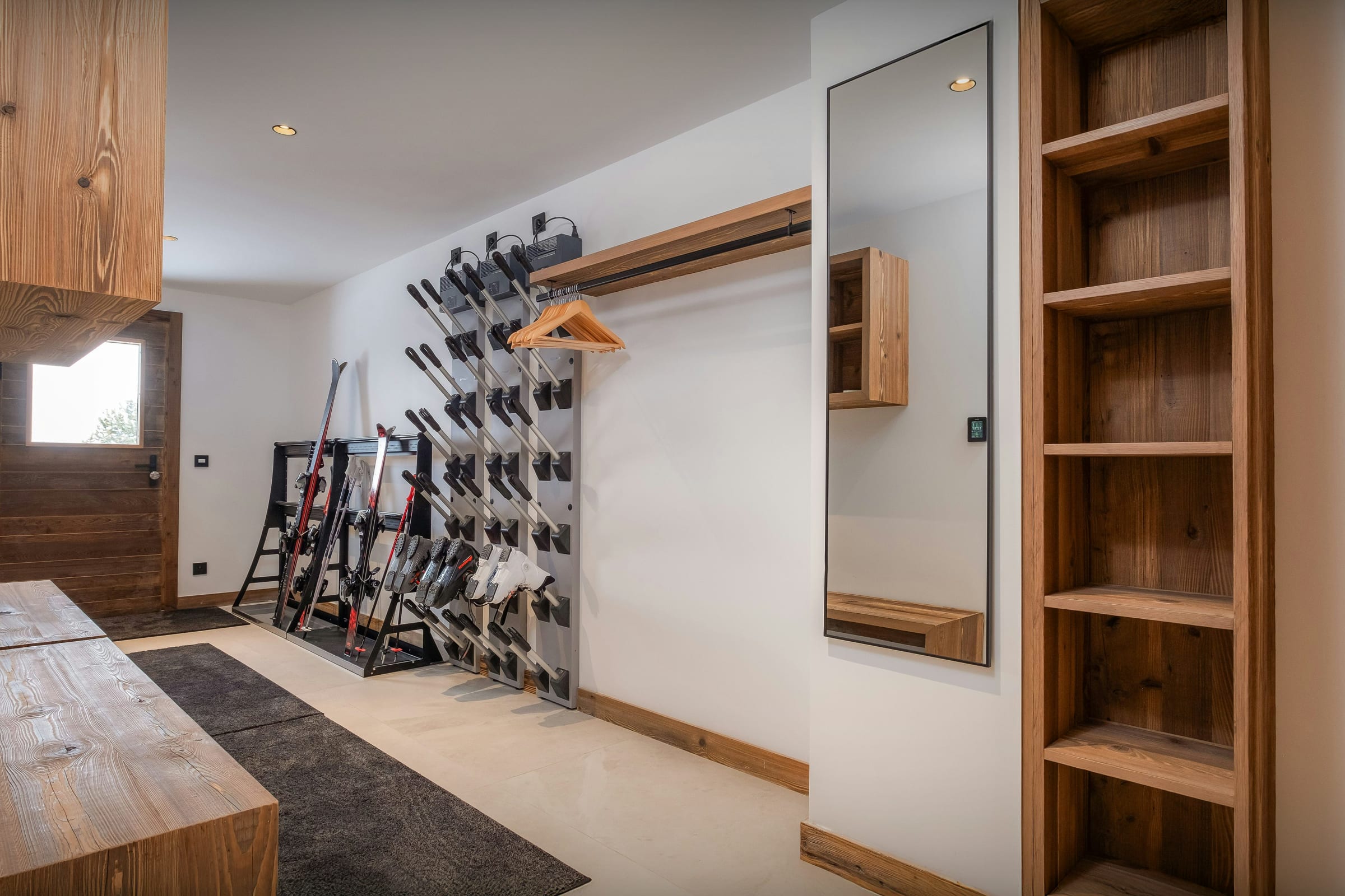 Afin de simplifier le quotidien, le chalet dispose également d’un local à skis avec sèche-chaussures chauffant, d’une buanderie et de plusieurs espaces de stationnement.