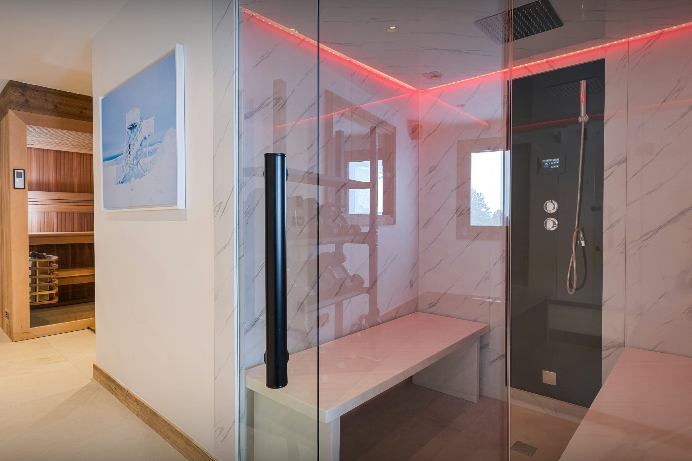 Son sauna, son hammam et son bain nordique extérieur promettent un séjour ressourçant, tandis que sa salle de sport permet de garder la forme. Le soir venu, installez-vous confortablement dans son home cinéma afin de terminer la journée dans une atmosphère feutrée.