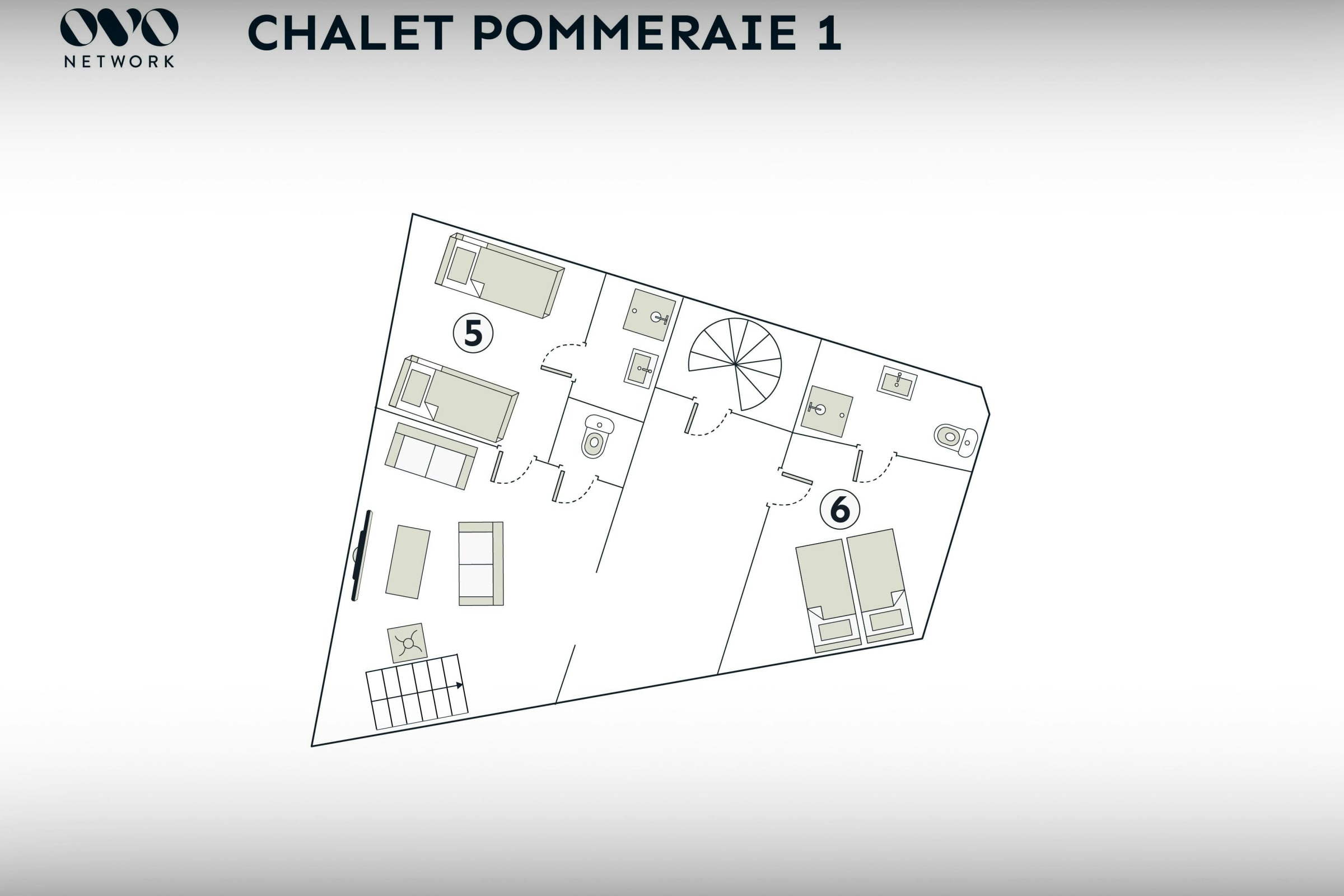 Pensé pour accueillir les grandes familles et les groupes d’amis jusqu’à 15 personnes, le Chalet La Pommeraie se déploie sur cinq niveaux et offre une véritable sensation d’espace, propice aux retrouvailles comme aux moments de détente.