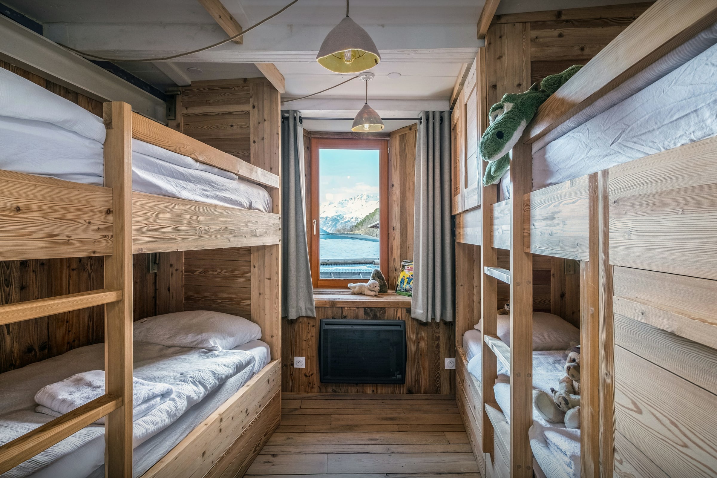 Les chambres bien réparties permettent à chacun de trouver ses repères. Entre les espaces pensés pour les enfants, les chambres doubles plus confidentielles et la suite avec balcon privé, le chalet satisfait toutes les configurations de groupe. La plupart des chambres disposent d’une salle de bains privative, et certaines ouvrent sur des balcons ou disposent d’un bureau, offrant de véritables bulles de tranquillité.