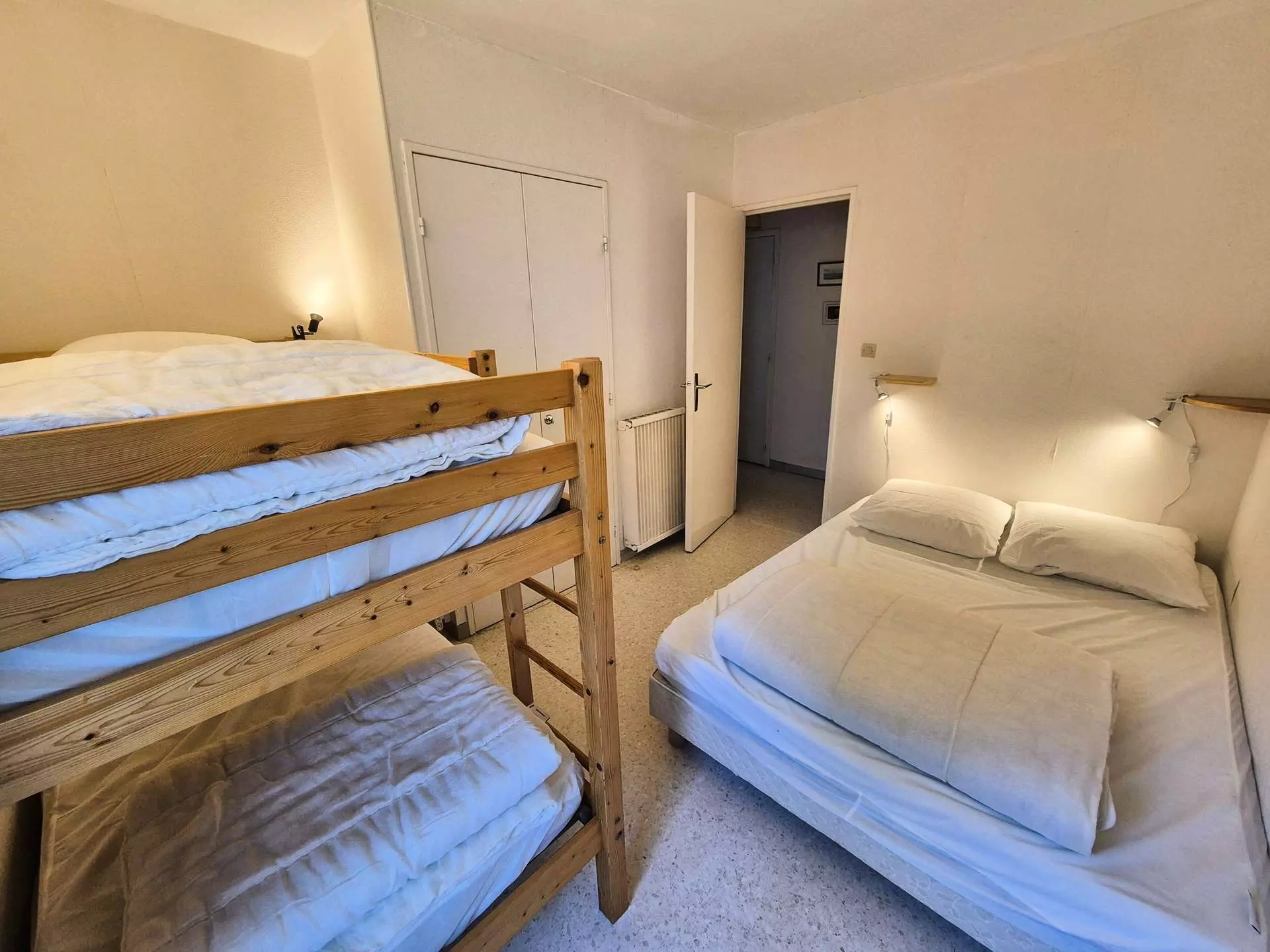 Chambre 2 : lit double + lit superposé, également ouverte sur le balcon