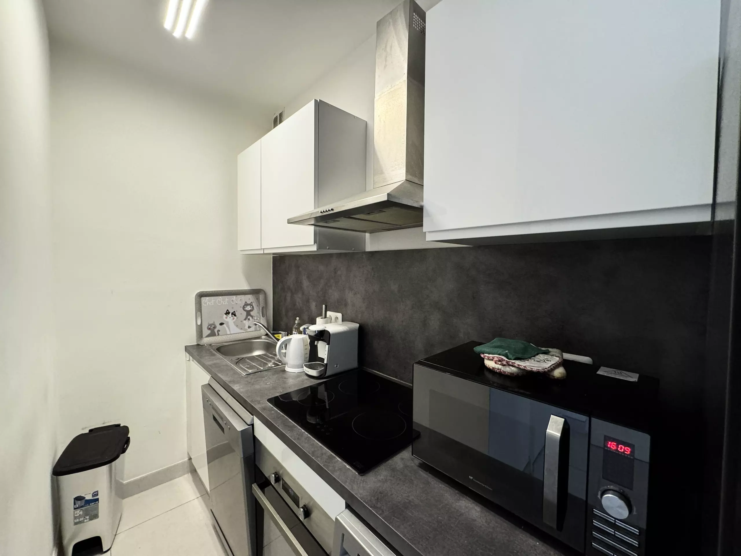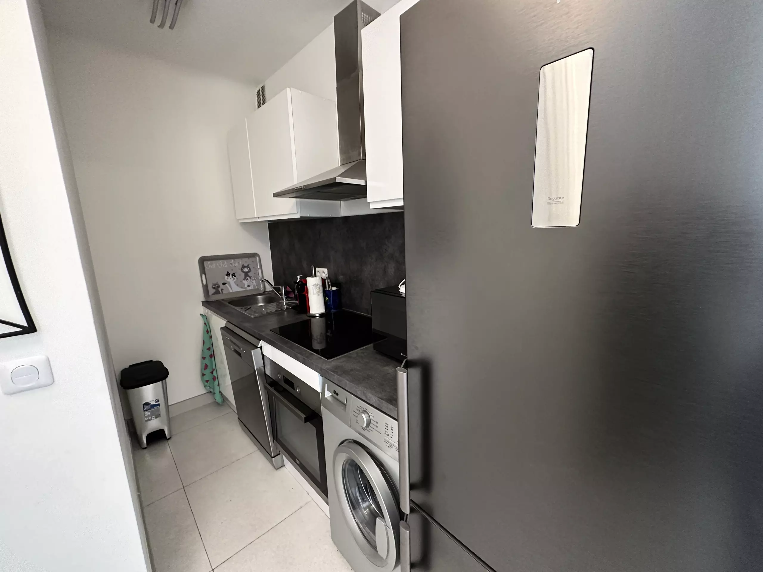 L’appartement comprend un Salon avec un canapé-lit confortable pour 2 personnes, climatisation, télévision, et accès à un balcon offrant une belle luminosité.Une chambre cosy avec un lit double et un grand placard intégré avec portes coulissantes pour un rangement optimal.Une cuisine entièrement équipée avec réfrigérateur, plaques de cuisson, micro-ondes, lave-linge, lave vaisselles, four, et tous les ustensiles.Une salle d'eau moderne avec douche, lavabo, WC et sèche-serviettes.