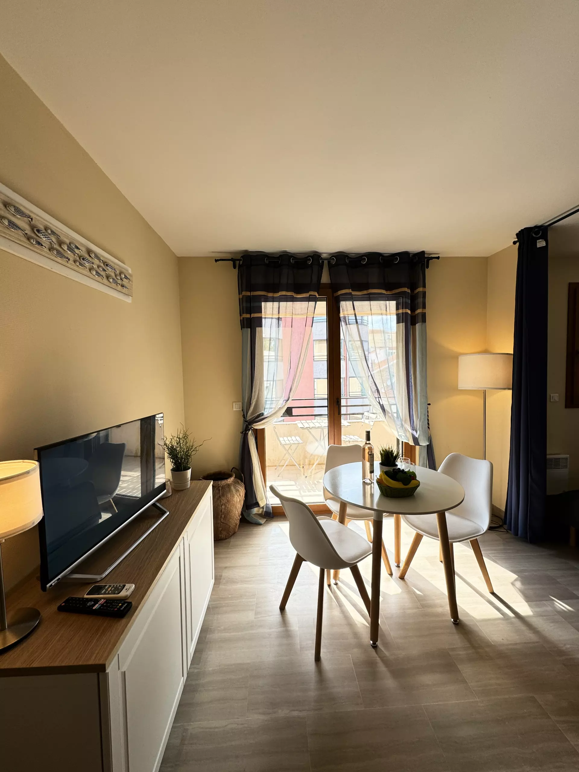 Cet appartement bénéficie également de la climatisation pour des journées estivales agréables, de l'accès Wi-Fi et d'une télévision pour votre divertissement, ainsi que d'un chauffage individuel et d'eau chaude pour un confort personnalisé en toute saison.