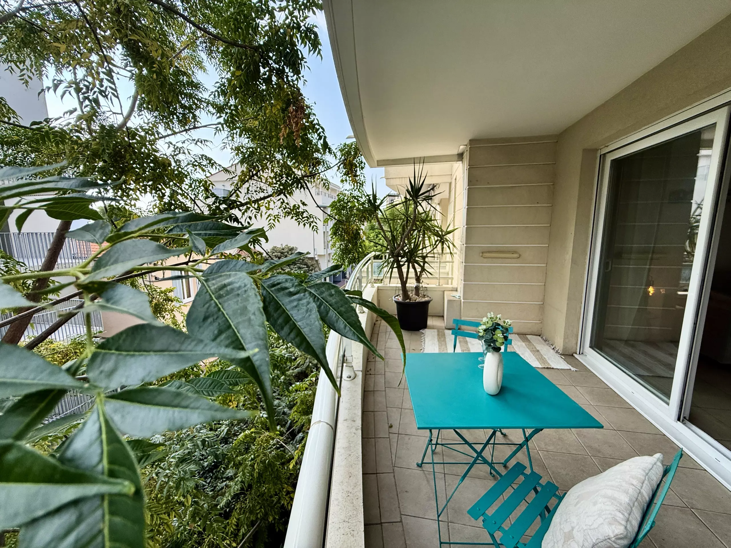 Appartement lumineux et élégant situé à Cannes-la-Bocca, à deux pas de la gare du Bosquet, qui relie rapidement Cannes et les grandes villes voisines.