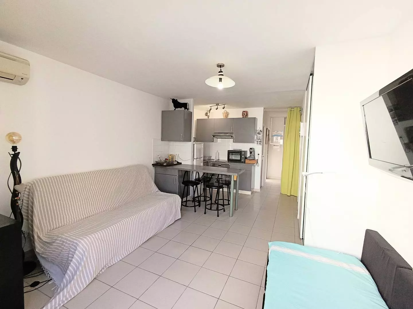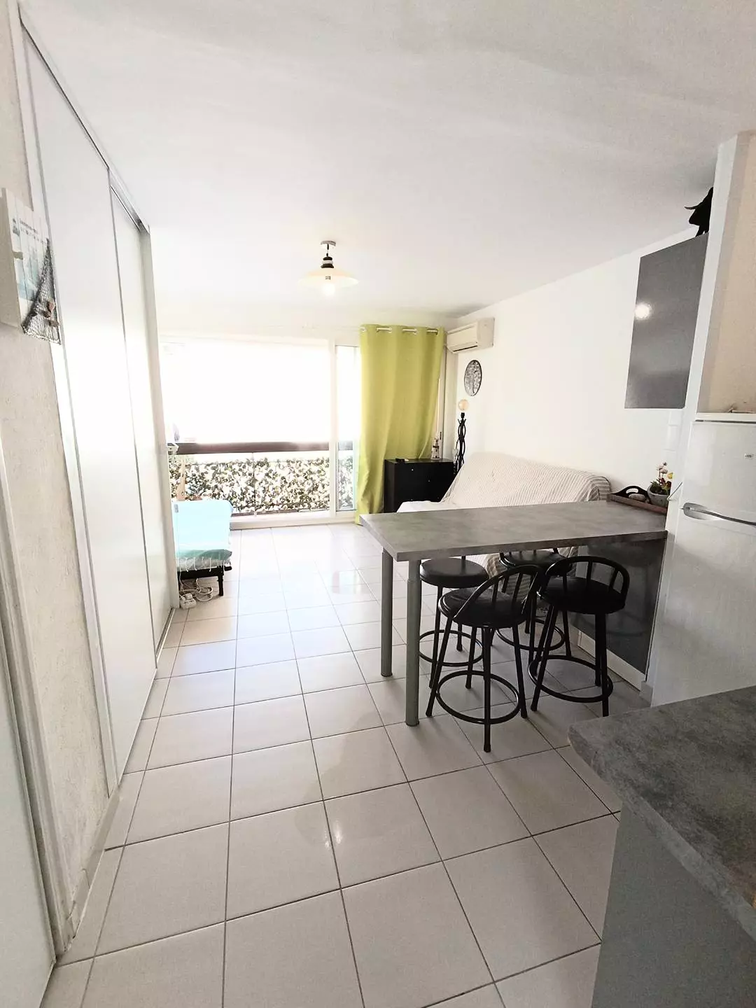 AU GRAU DU ROI - RIVE DROITE - Dans une résidence à 20m de la Plage et à 600m du centre ville, au 1er étage studio cabine de 28m², composé à l'entrée d'une cabine avec un lit simple (90cm), d'un séjour avec un canapé convertible en 140cm, un lit simple en 90cm ,TV et climatisation, une cuisine équipée ( frigo/congélateur , micro-ondes,four, plaque de cuisson, cafetière Senseo). Salle d'eau avec lave linge et un WC séparé. Balcon de 3m² avec vue latérale sur la Mer. A 500m du centre commercial et à 600m du Centre Ville. Meublé et équipé pour 4 personnes.