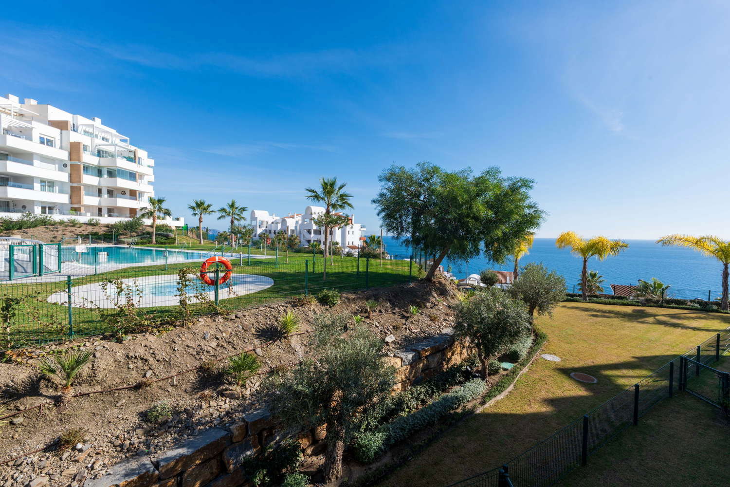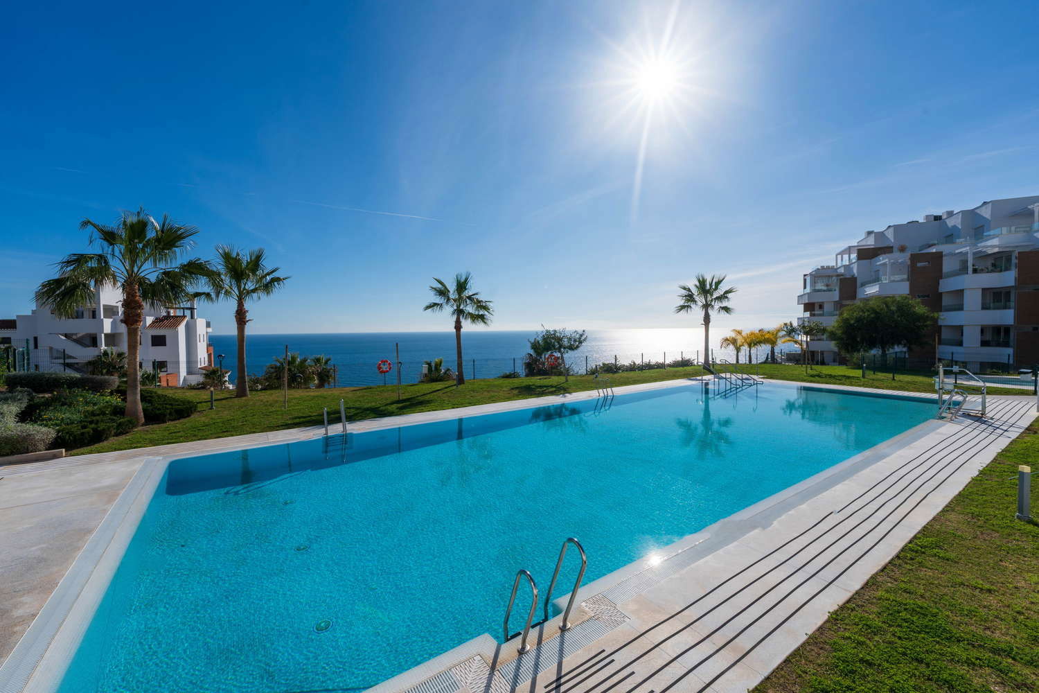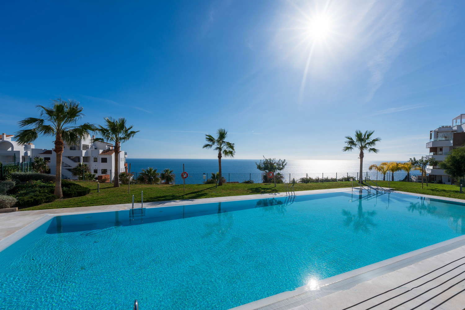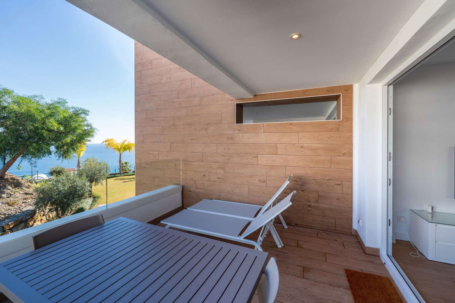Vie intérieure et extérieure : L'architecture moderne efface les limites : le salon s'étend vers une terrasse privée orientée vers le plaisir visuel. Vous y trouverez une table pour des dîners intimes au coucher du soleil et deux transats exclusifs pour bronzer en toute intimité sans avoir à descendre dans les zones communes, tout en profitant d'une vue relaxante sur la piscine et la mer.