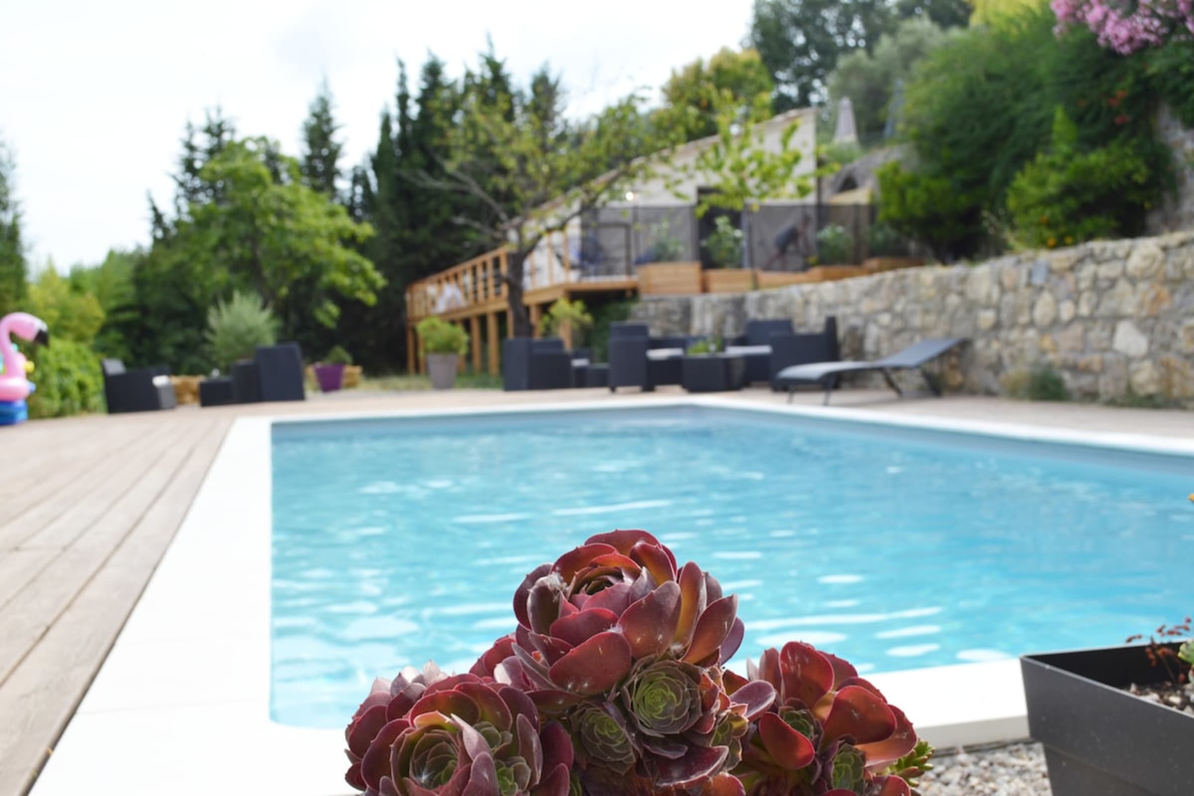 Le jardin et la piscine sont en accès libre et communs aux locataires des 4 appartements.