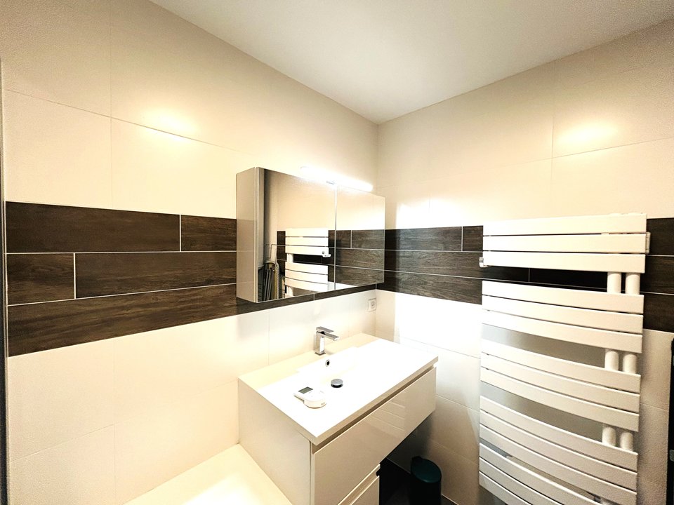 Equipement : Réfrigérateur avec partie congélateur, plaques de cuisson à induction, four micro-ondes, four électrique, lave-vaisselle, télévision, wifi, bouilloire électrique, grille-pain, cafetière électrique, cafetière à dosettes Dolce Gusto, sèche-cheveux, aspirateur, fer à repasser. Ascenseur