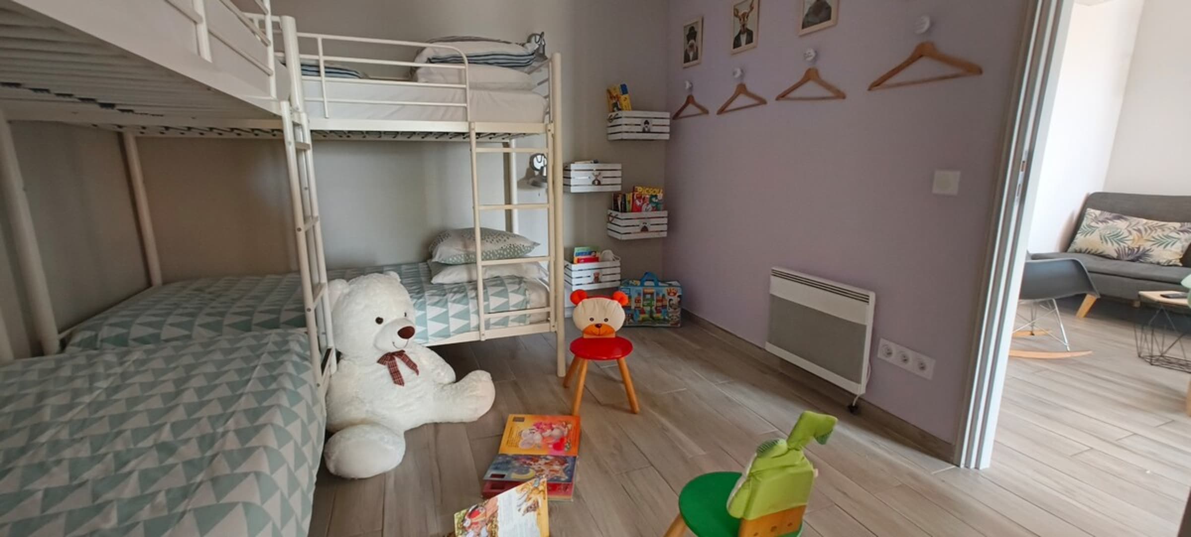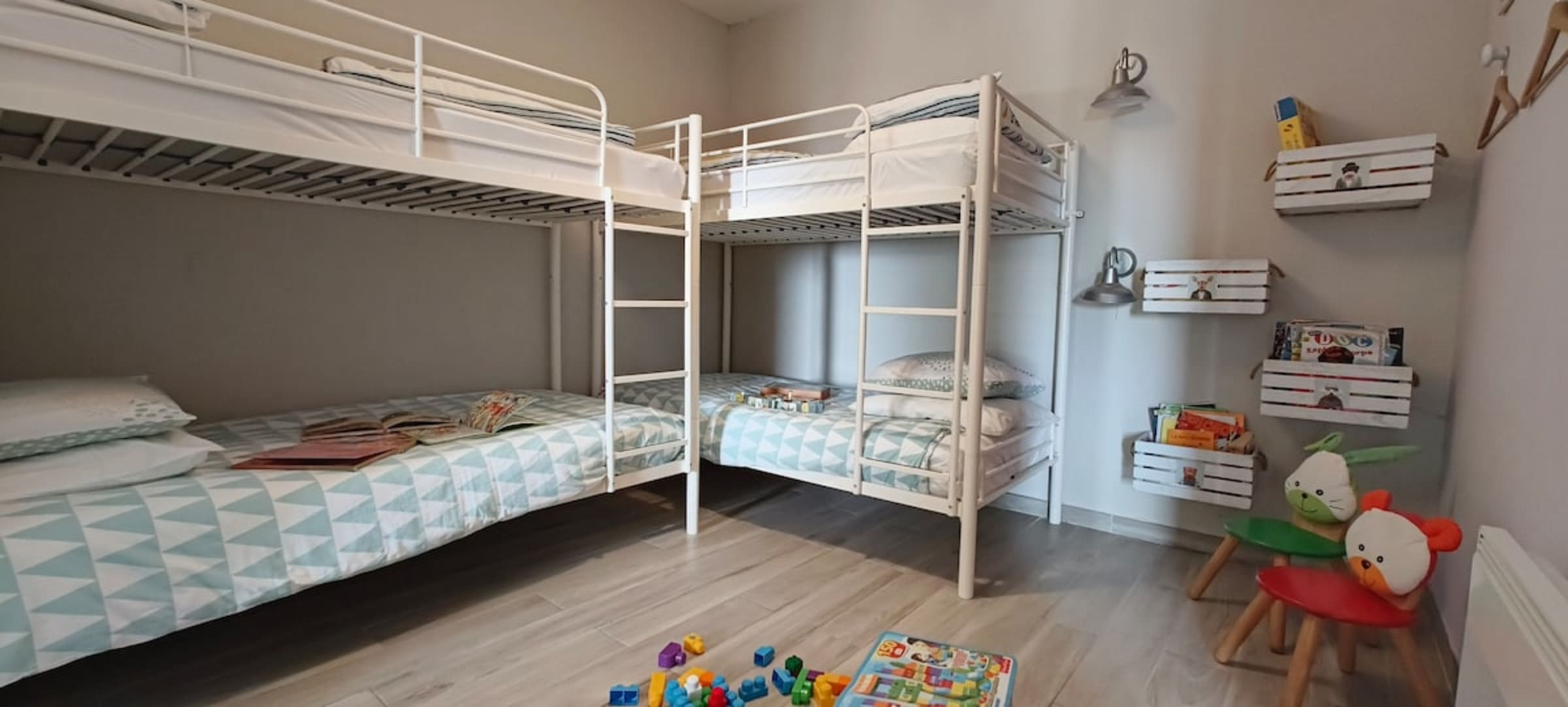 Une seconde chambre enfants avec 4 lits simples (2 lits superposés)