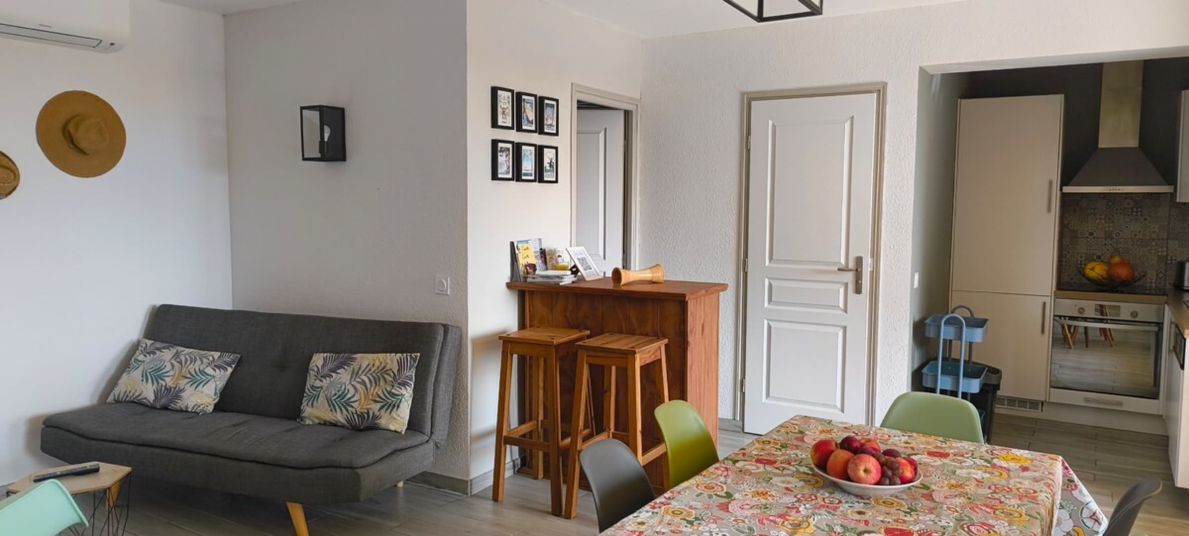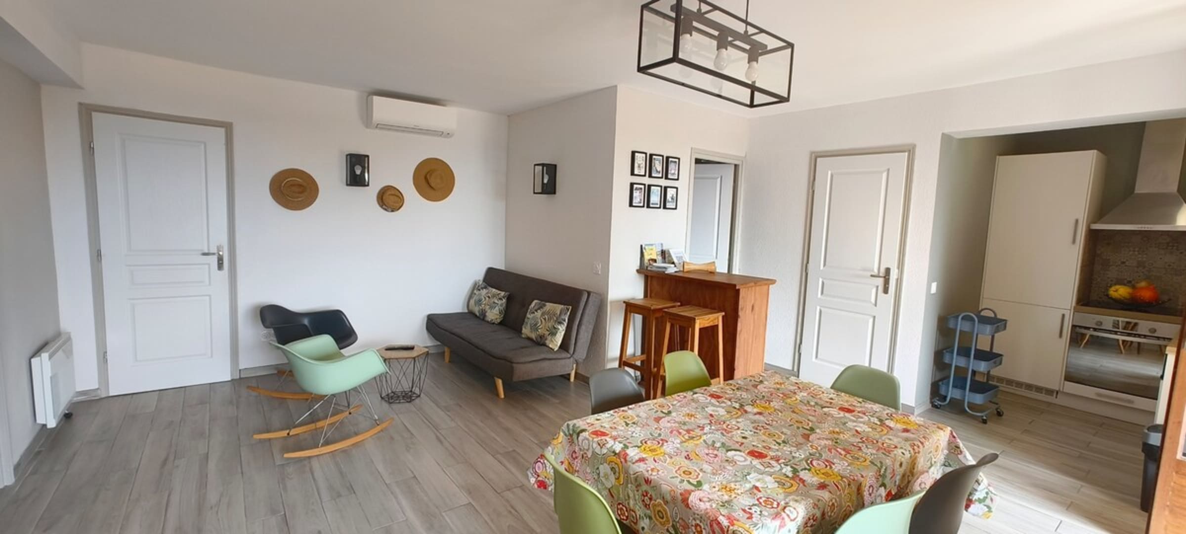 T3 rénové, climatisé entre mer et montagne, piscine, jardin