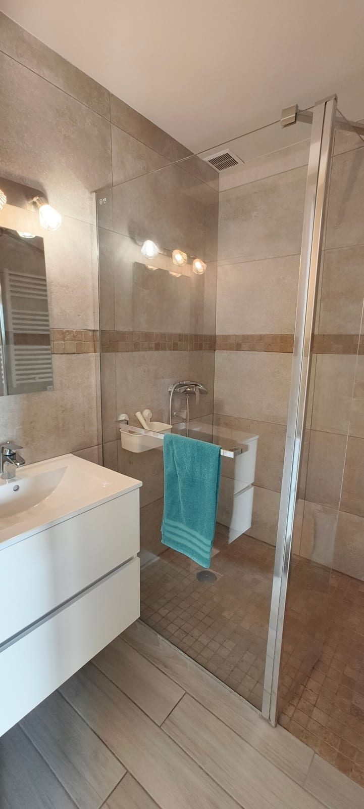 Salle de douche avec une belle douche à l'italienne + toilettes séparées.