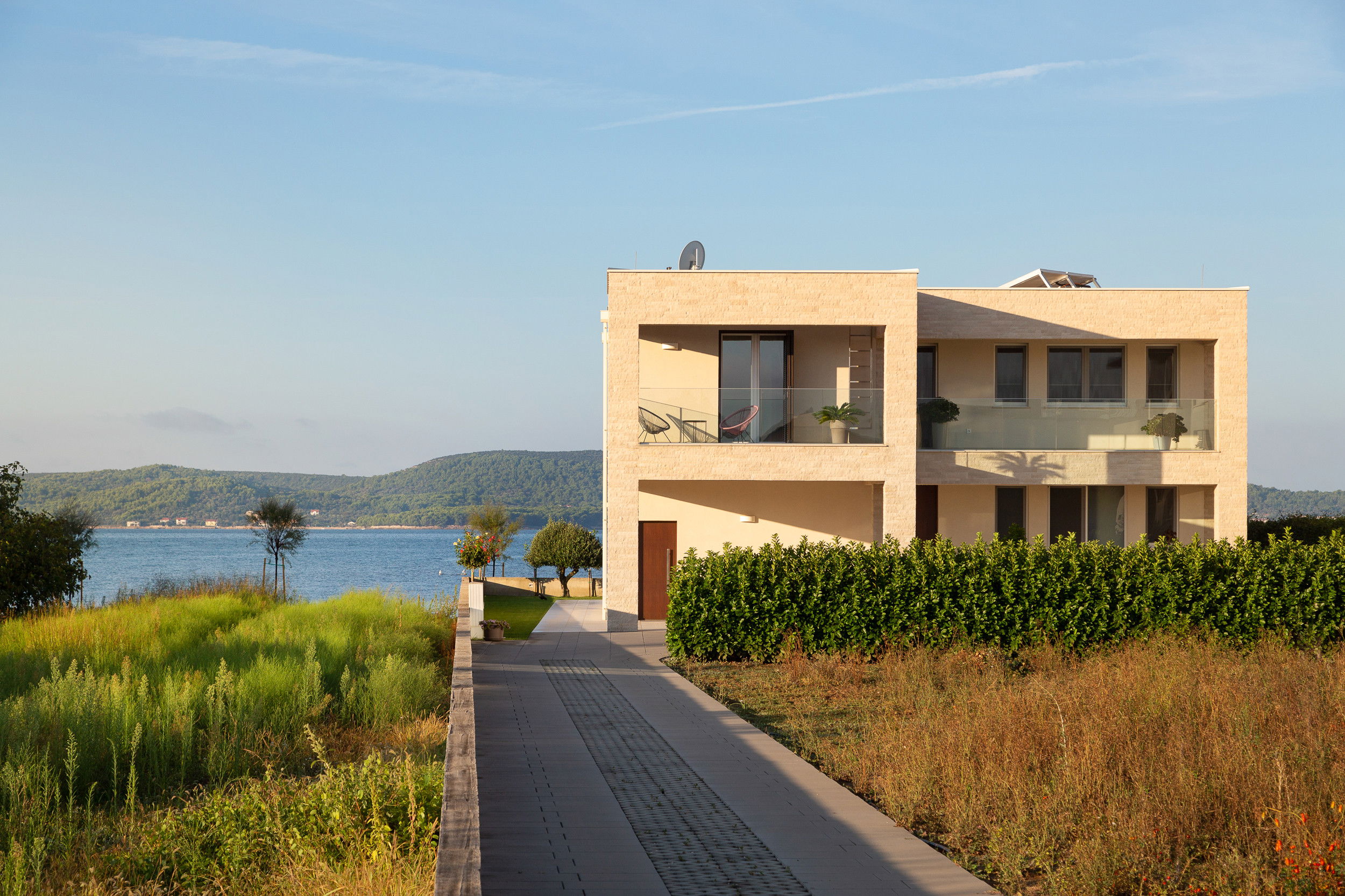 Logement de 425 m² joli et moderne, situé en front de plage, avec vue sur la mer et le jardin.