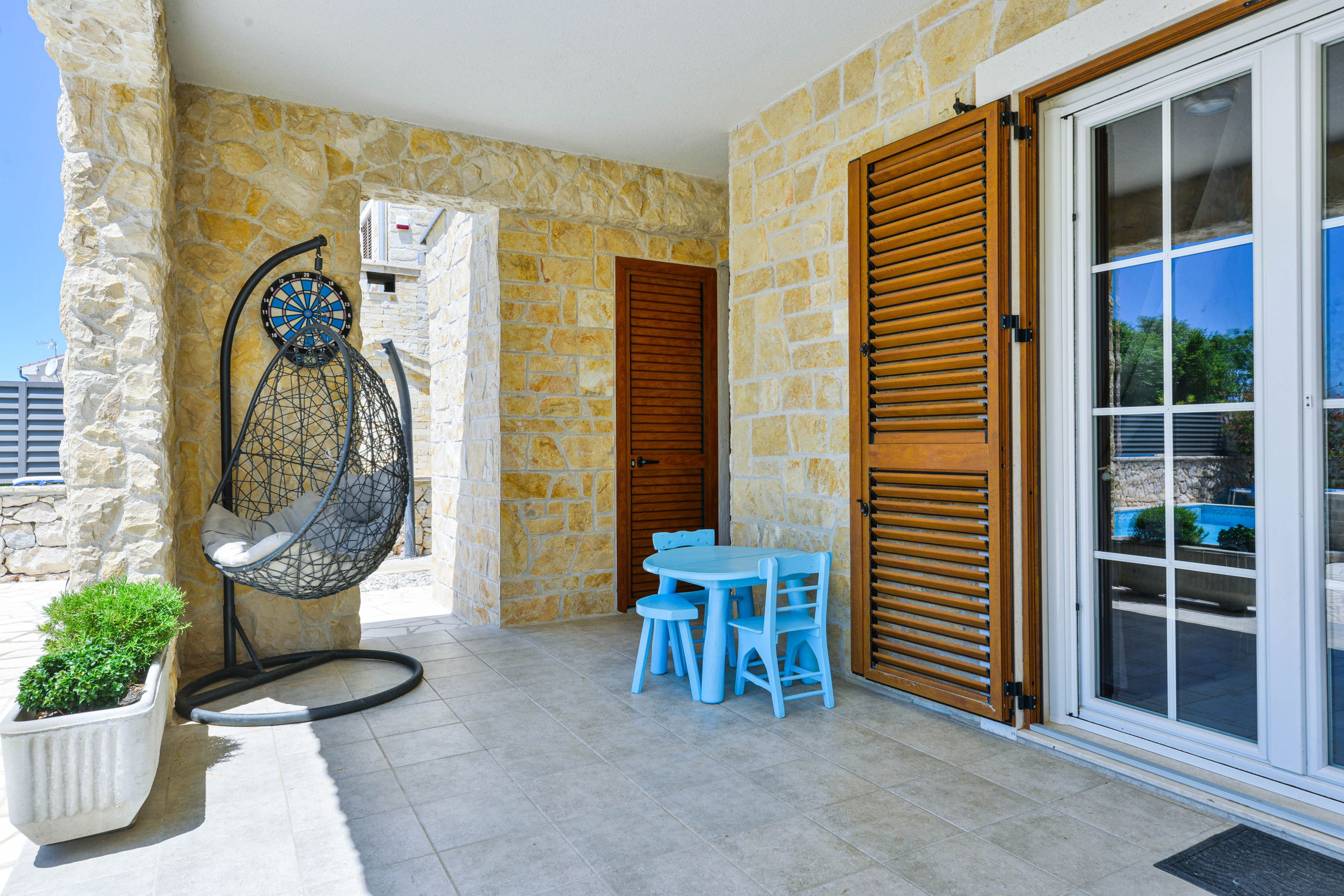 Elle dispose de jardin, mobilier de jardin, terrasse, lave-linge, sèche-linge, barbecue, fer à repasser, accès internet (wifi), sèche-cheveux, balcon, zone pour les enfants, chauffage électrique, climatisation dans tout le logement, piscine privée, piscine chauffée privée, parking extérieur même bâtiment, TV, tv satellite.
