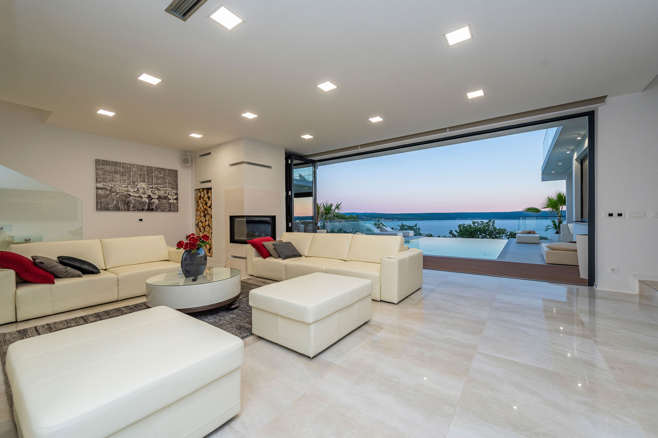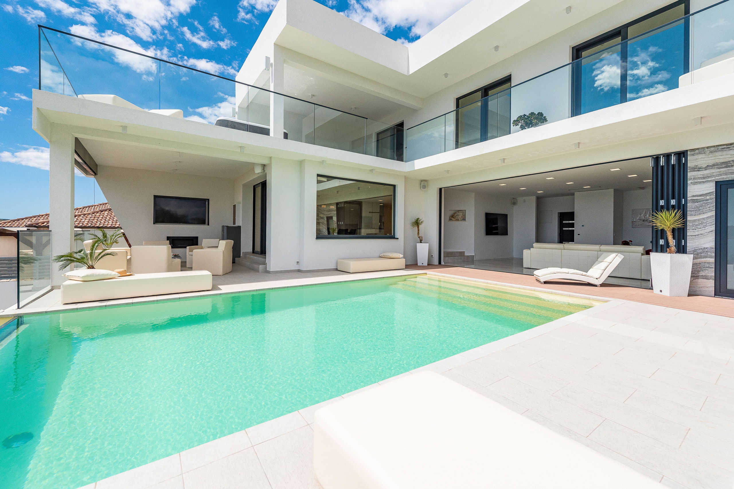 Logement de 440 m² joli et cuisine totalement équipée, avec vue sur la mer et la piscine.