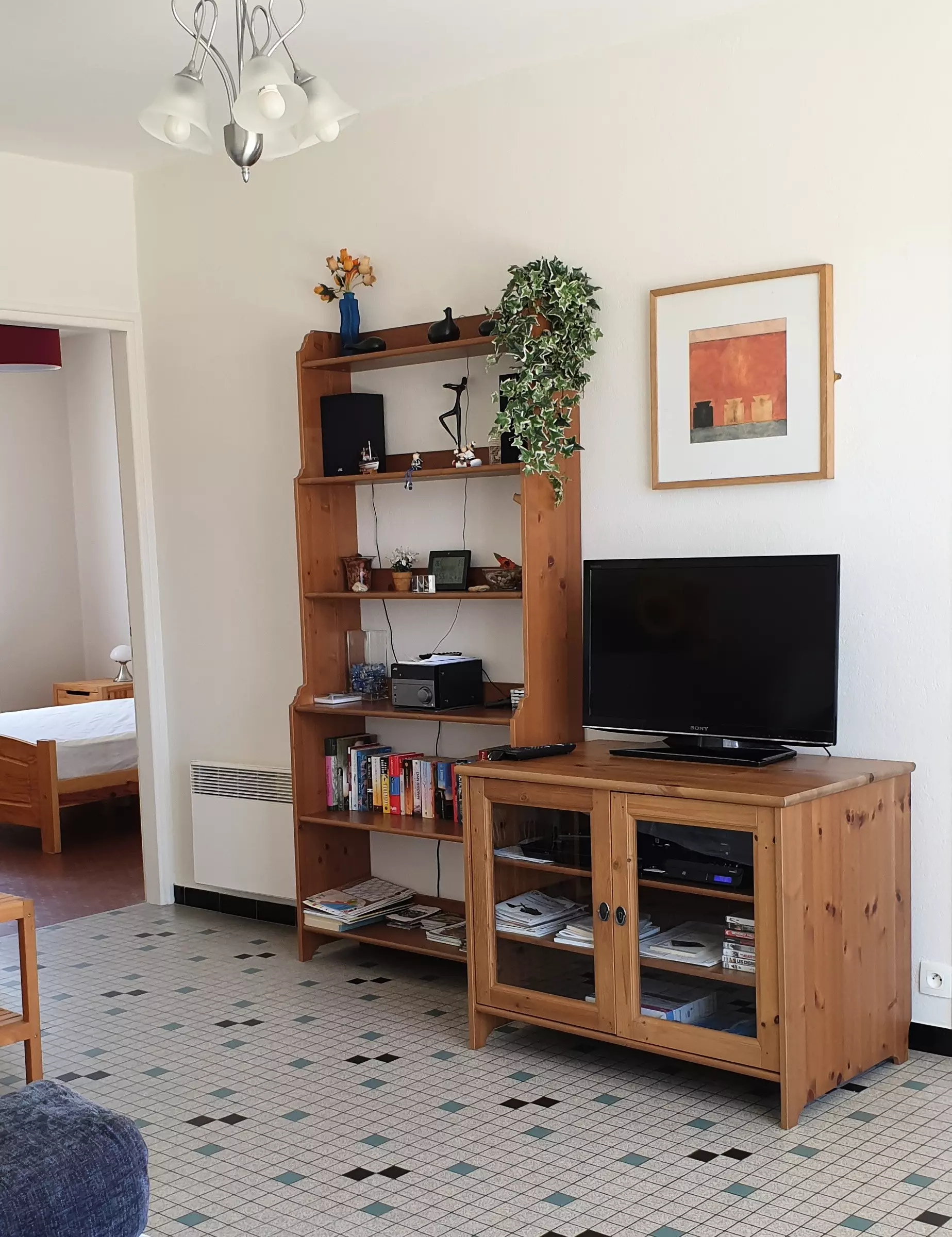 Pièce de vie conviviale : Un salon cosy avec télévision pour se détendre et une salle à manger équipée d’une grande table pour vos tablées à 6.