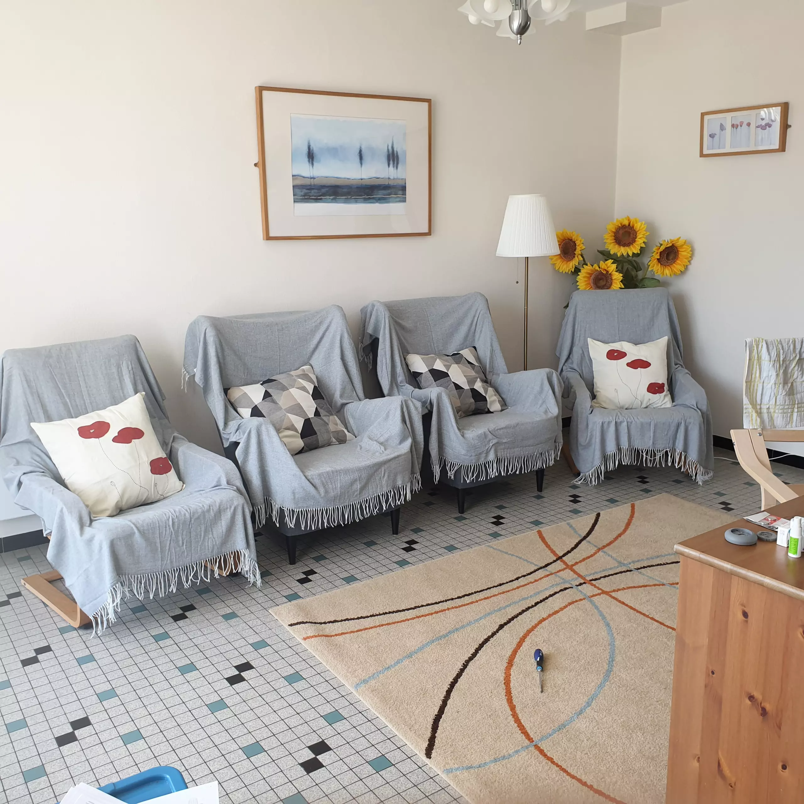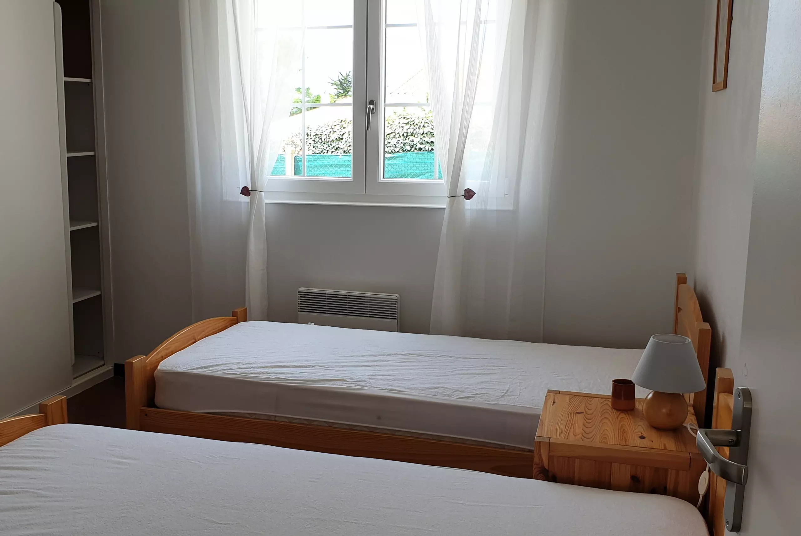 Deux chambres séparées : Une chambre avec un lit double (140x190) et une seconde chambre avec deux lits simples (90x190).