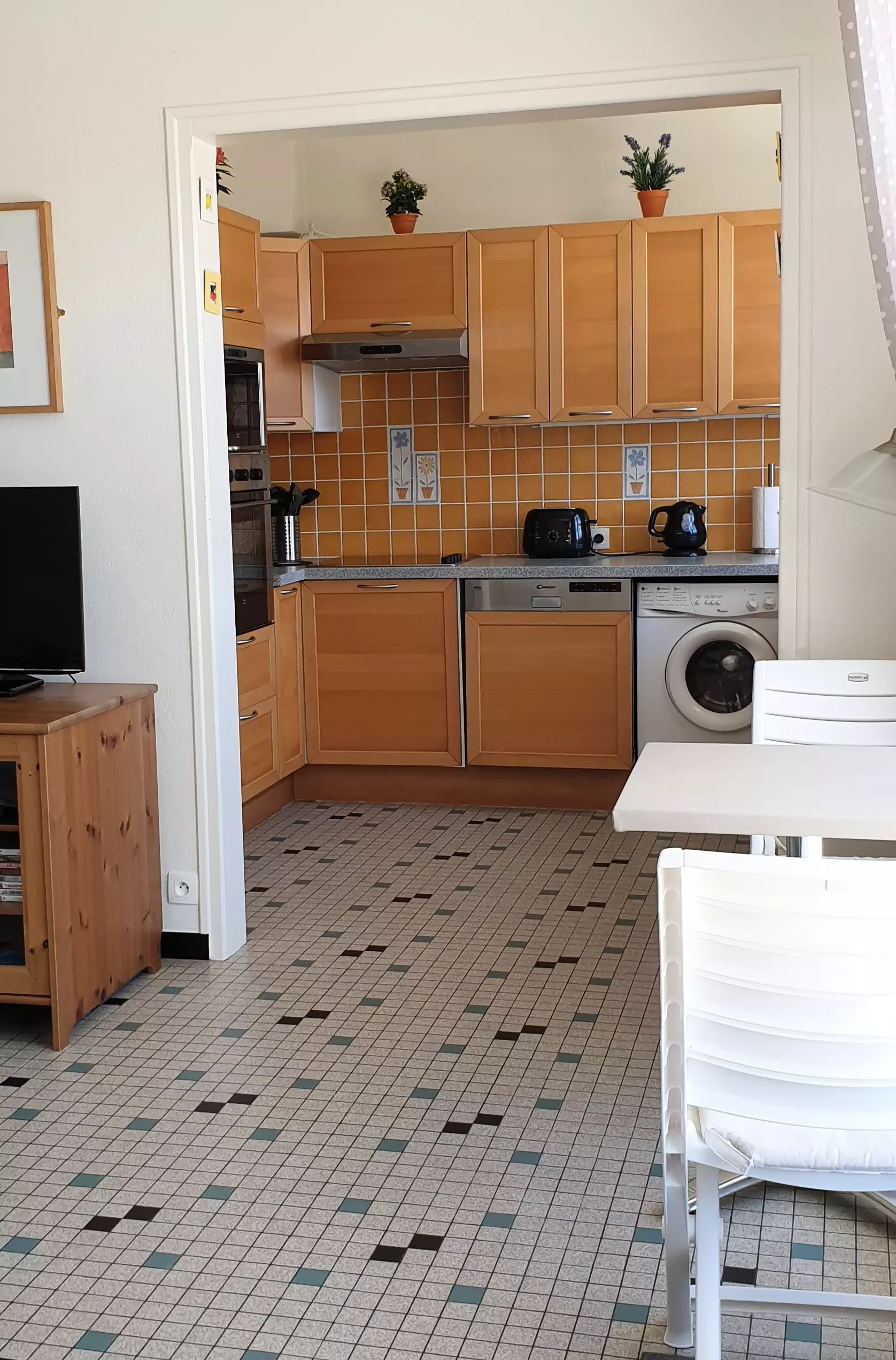 Cuisine ouverte : Une cuisine fonctionnelle et entièrement équipée de tout le nécessaire (plaques vitrocéramiques, four, micro-ondes, cafetière, ustensiles) pour cuisiner vos repas de vacances.