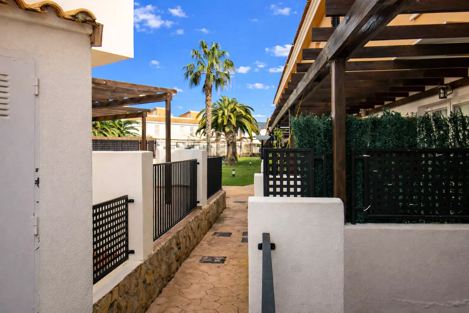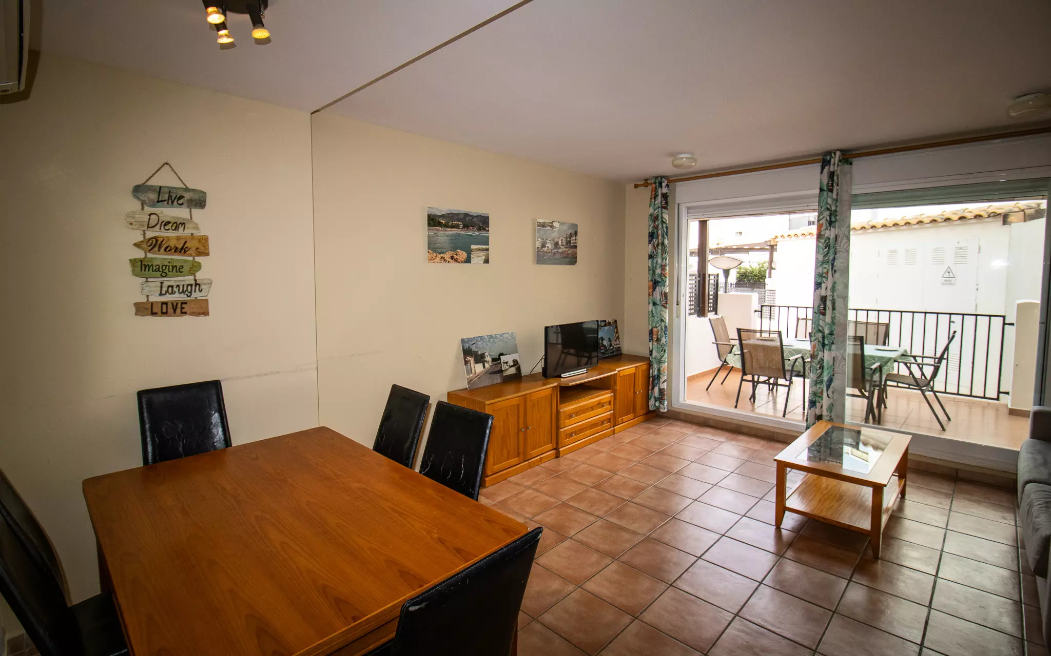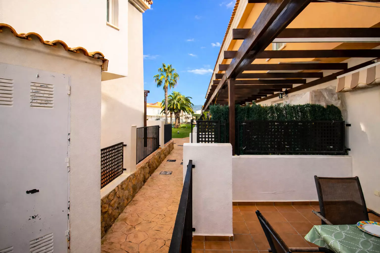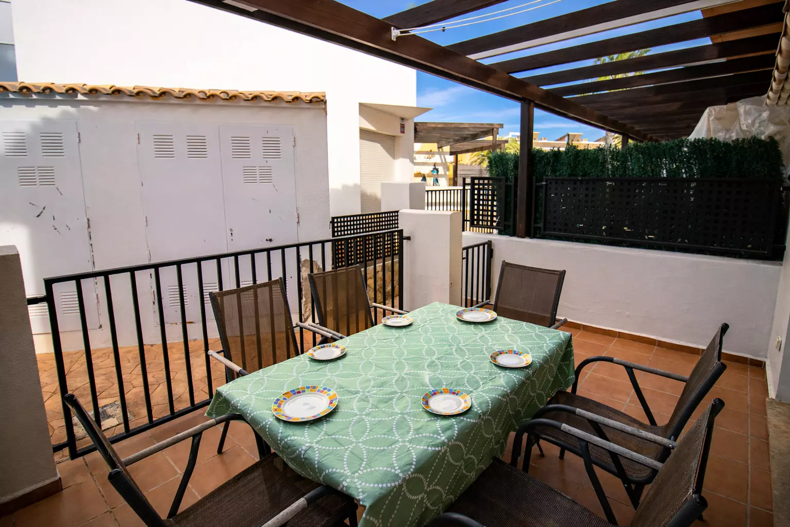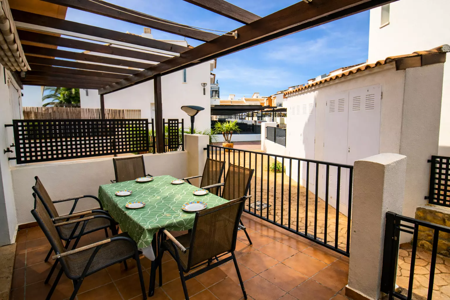 Elle dispose de jardin, mobilier de jardin, clôture, terrasse, lave-linge, fer à repasser, accès internet (wifi), chauffage pompe à chaleur, climatisation dans le salon et certaines chambres, piscine collective+infantile, parking extérieur même bâtiment, TV, tv satellite (Langues: Espagnol).