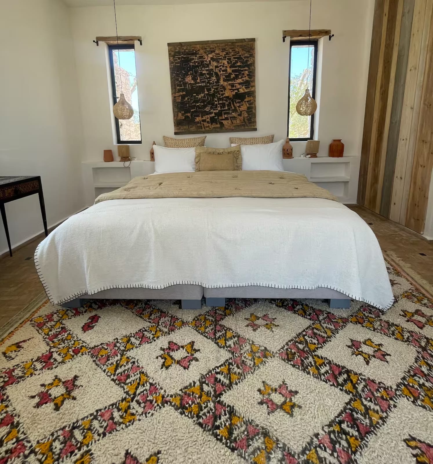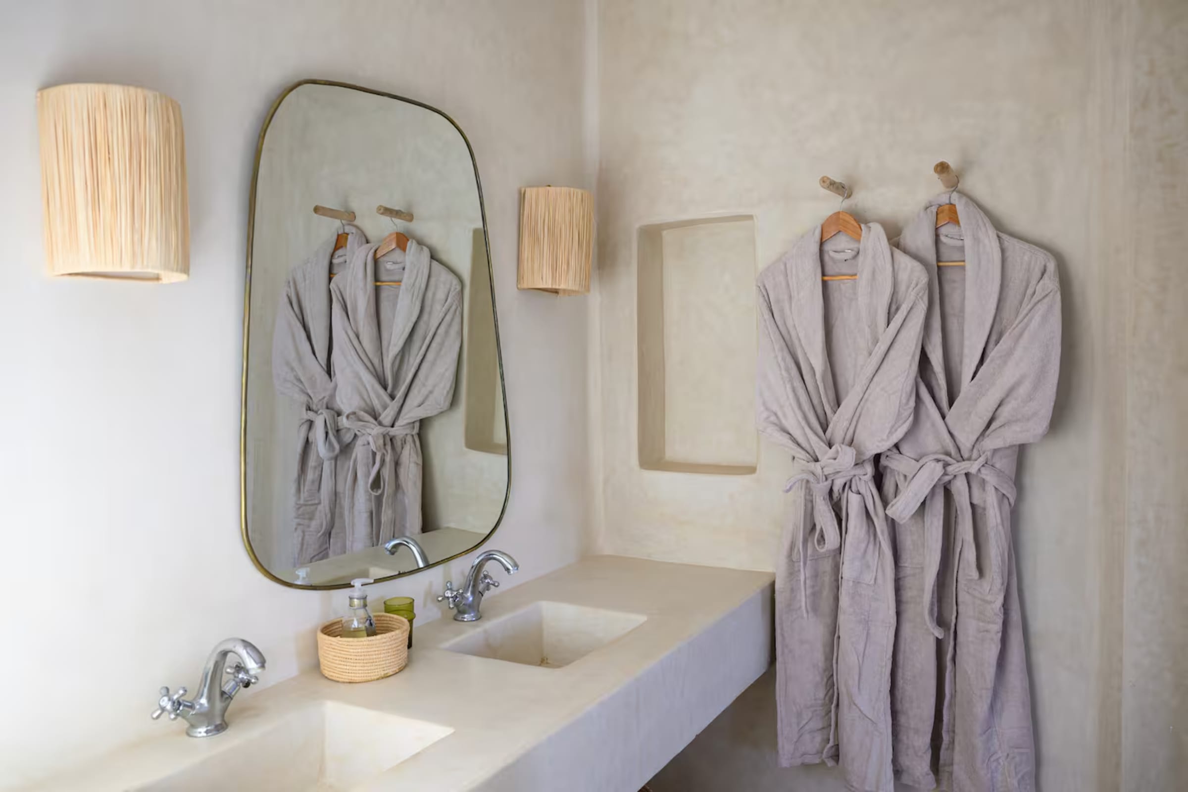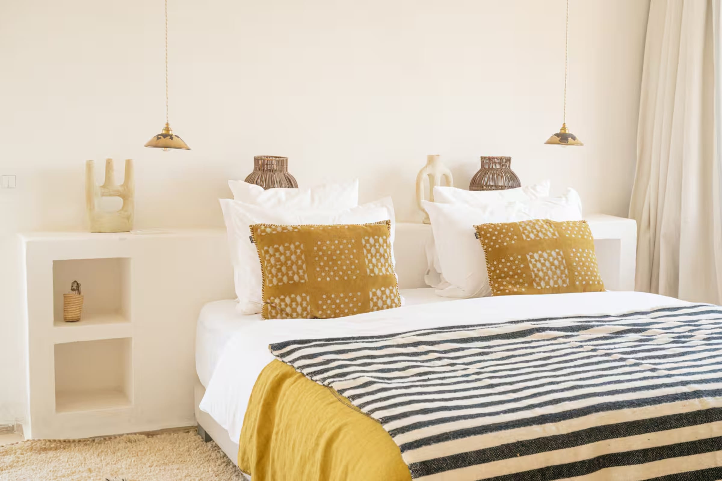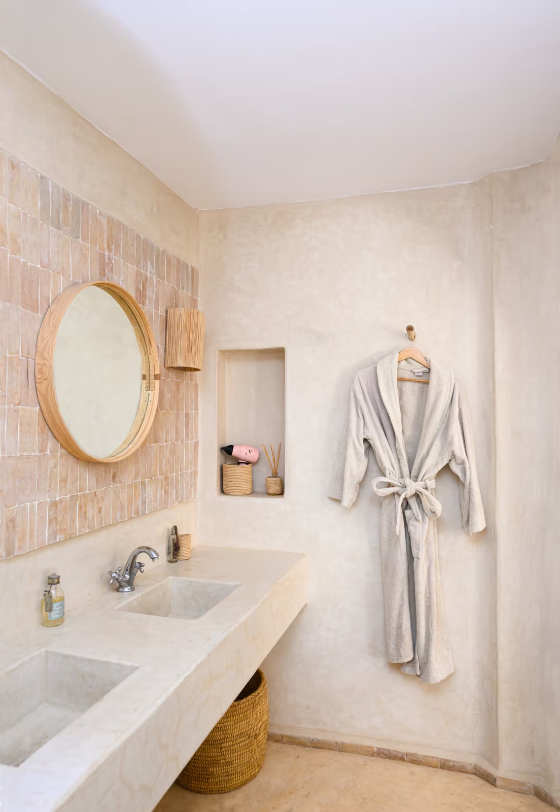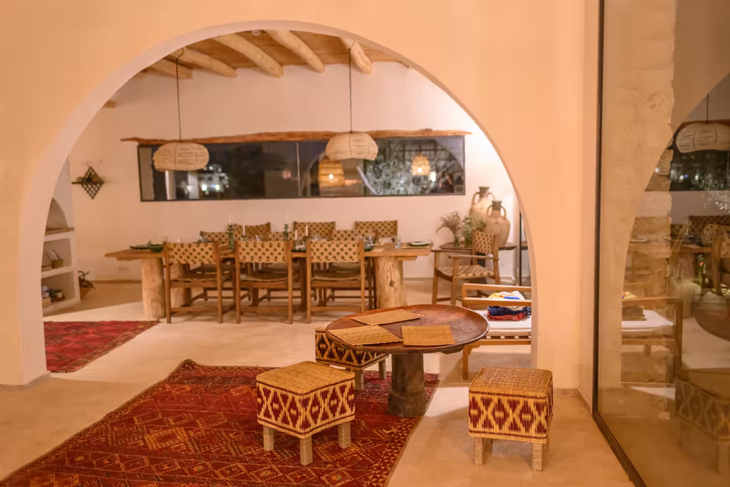 La décoration marie subtilement artisanat marocain, design épuré, matières nobles et couleurs douces, créant une atmosphère chaleureuse et authentique.