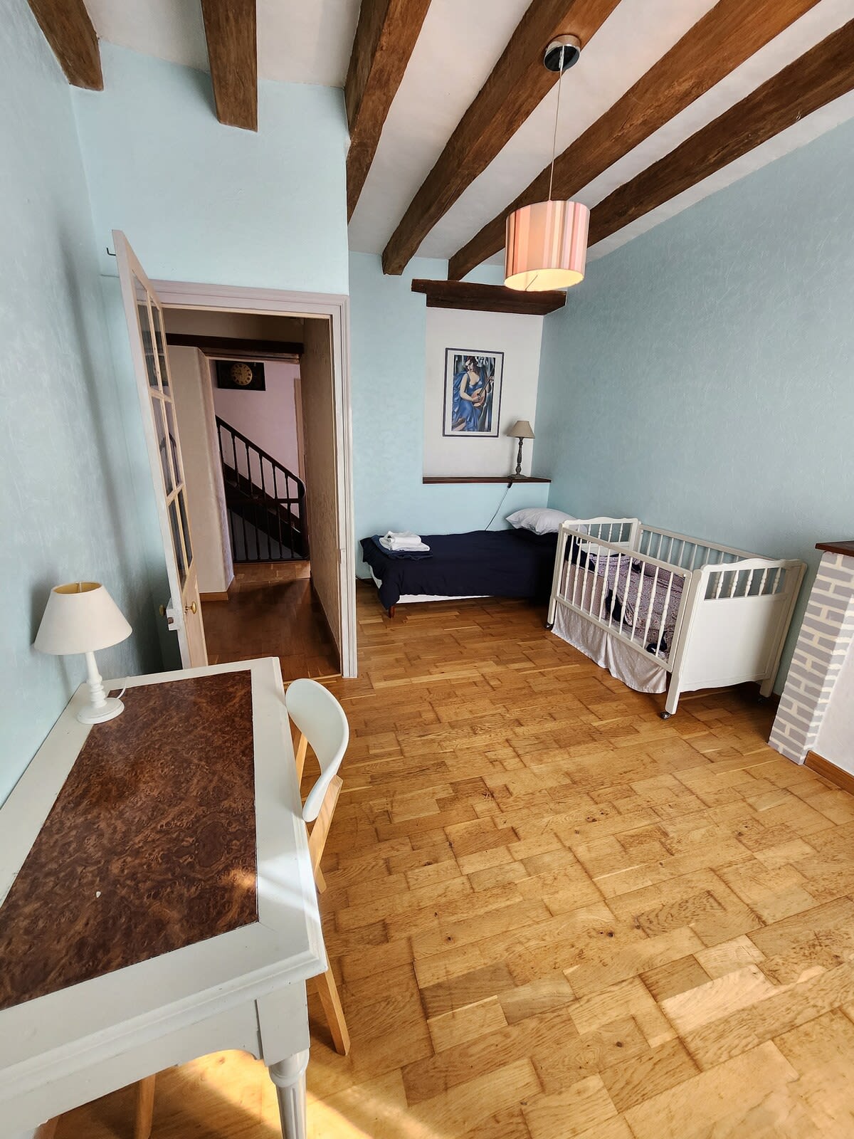 L’une des chambres comprend un espace dédié au télétravail, idéal pour les séjours professionnels.