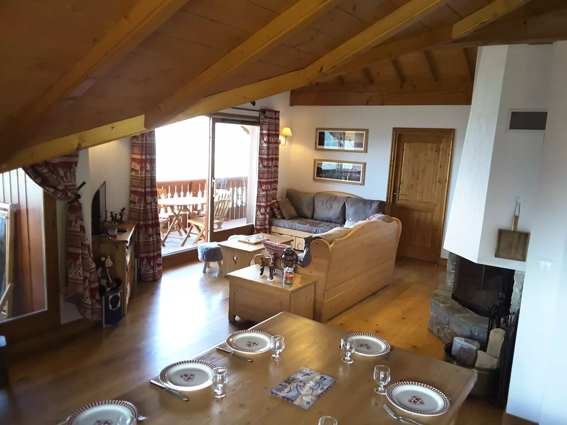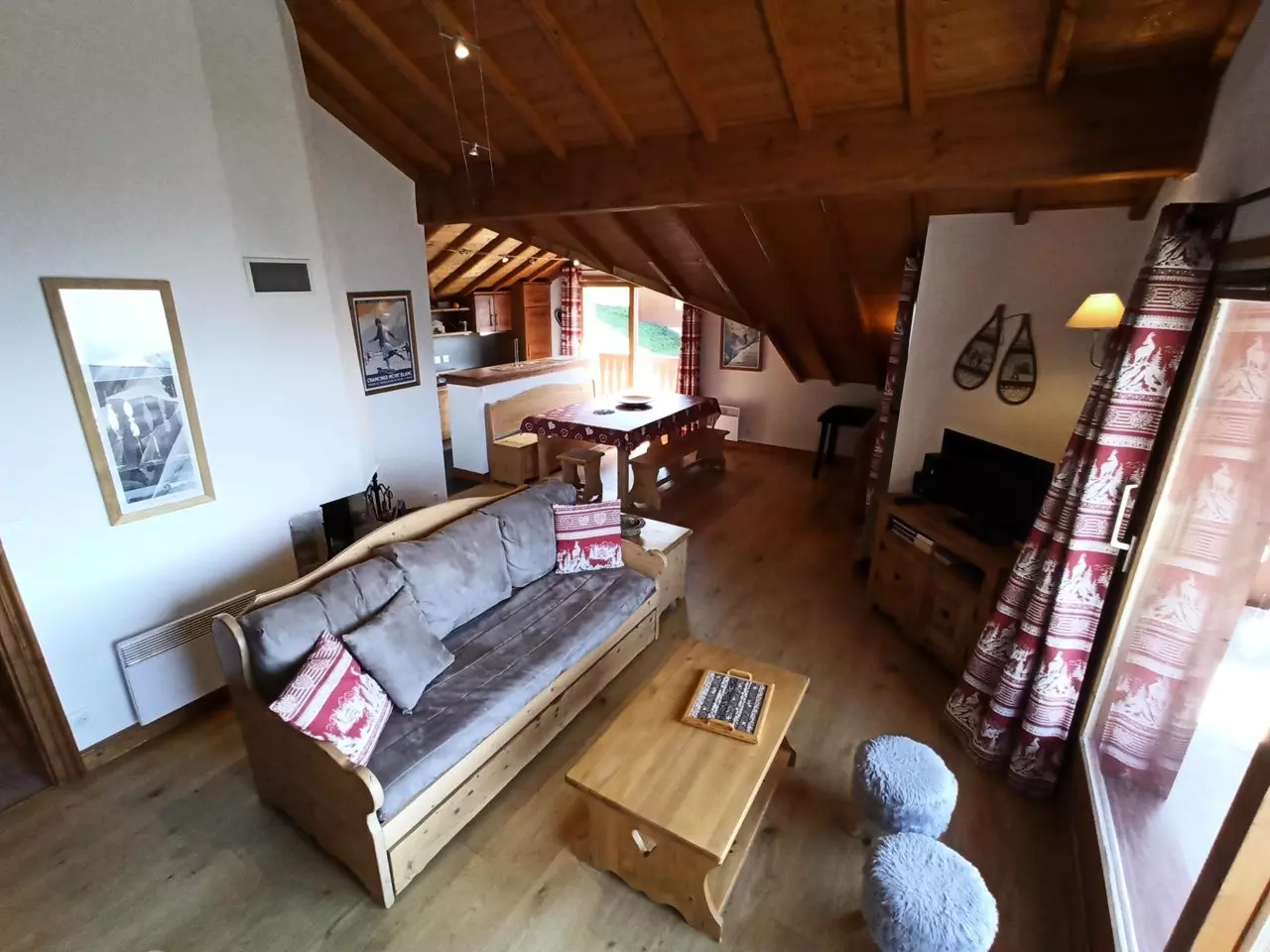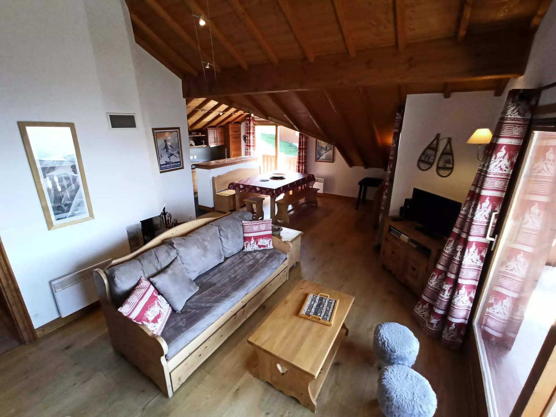 Sous les toits, dans une petite résidence située à 200m des pistes et des commerces, cet appartement entièrement rénové avec goût est loué pour 8 personnes sans couchages dans le séjour.