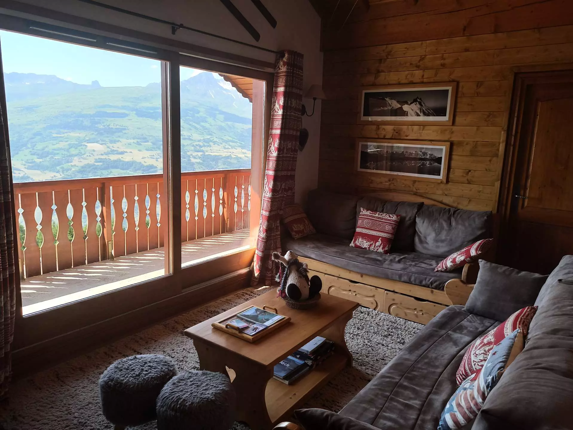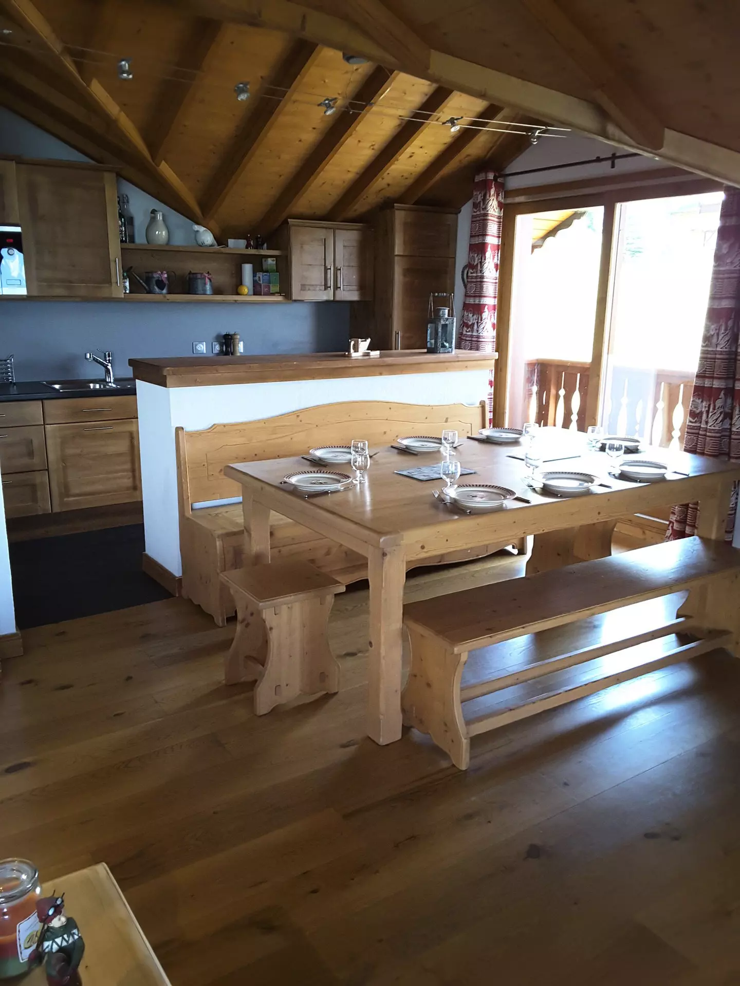 La cuisine équipée est ouverte sur une grande pièce à vivre qui donne sur deux balcons orientés sud et ouest offrant une vue exceptionnelle sur la vallée.
