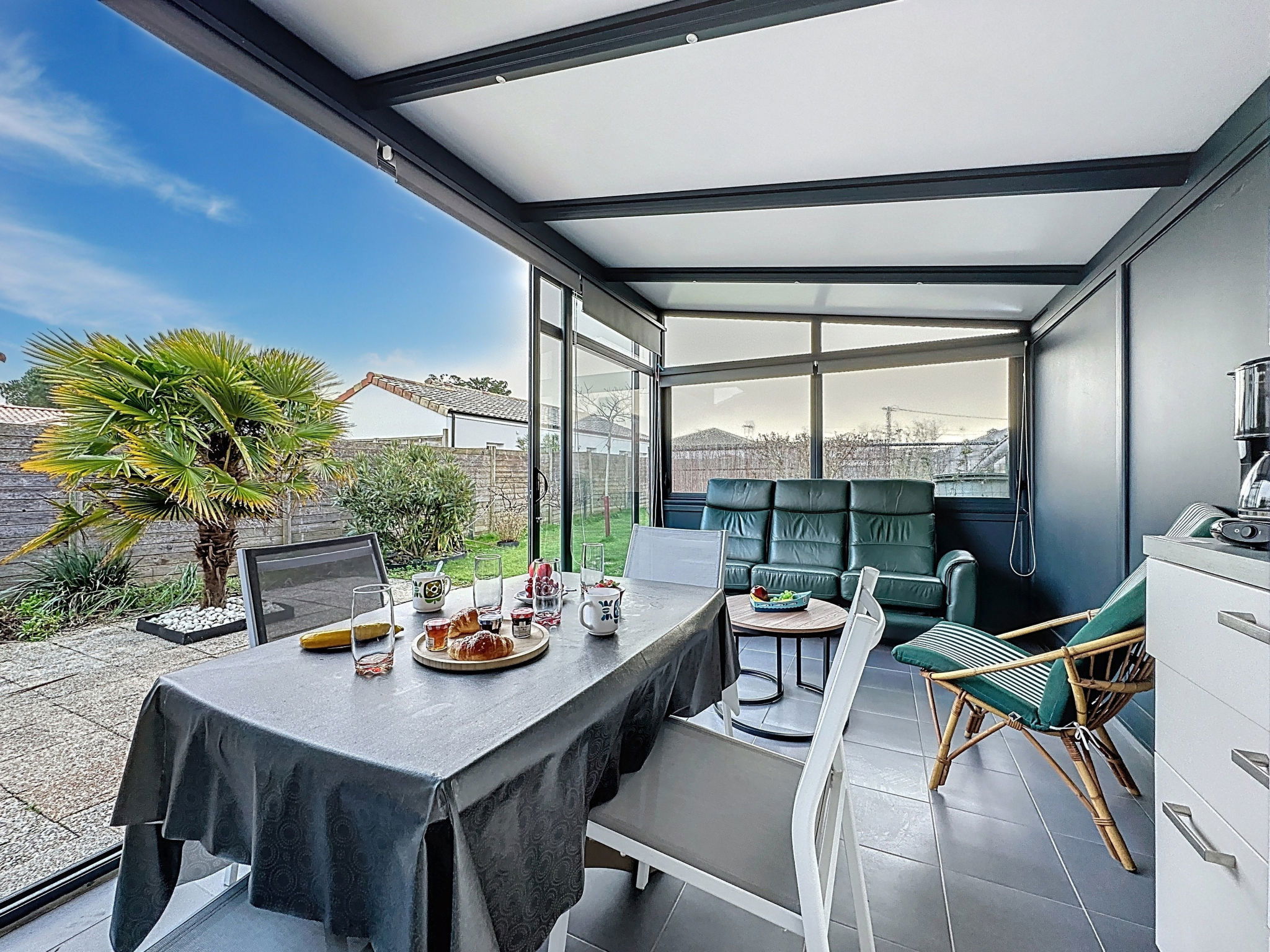 "Les Rochers du Roi", maison 3 pièces 60 m2, situation ouest. Séjour/salle à manger avec TV " 2 km, gare ferroviaire "La Bernerie en Retz" 2 km, plage de sable "Plage de Crève Coeur" 900 m, centre thermal "Alliance Pornic Thalasso & Spa" 7 km. Port plaisance 5 km, terrain de golf (18 trous) 8 km, tennis 1.5 km, golf miniature 8 km. Attractions à proximité: Marché de la Bernerie en Retz 2 km, Pornic 6 km, Port du Collet 22 km, Planète Sauvage 27 km, Les Machines de l'Ile de Nantes 52 km, Ile de Noirmoutier 65 km. Les lacs connus sont facilement accessibles: Lac de Saint Viaud 27 km. Veuillez noter: D’autres appartements sont également proposés à la location dans cette maison de vacances. La propriété référencée FR2542.647.1 est située sur le même terrain.