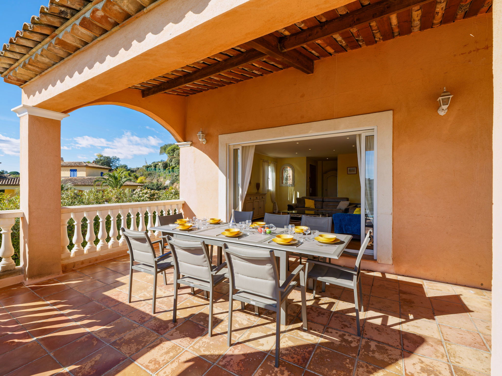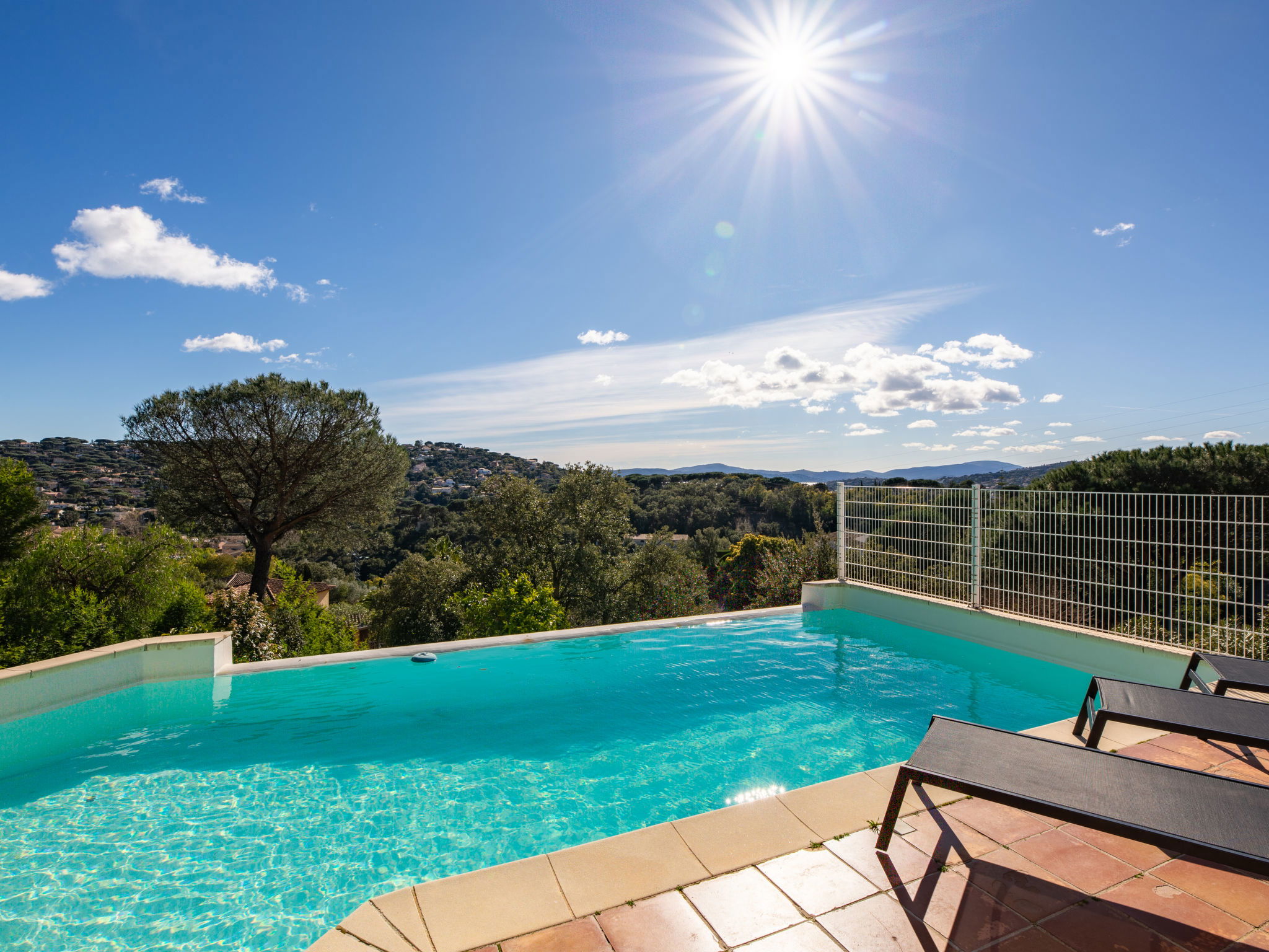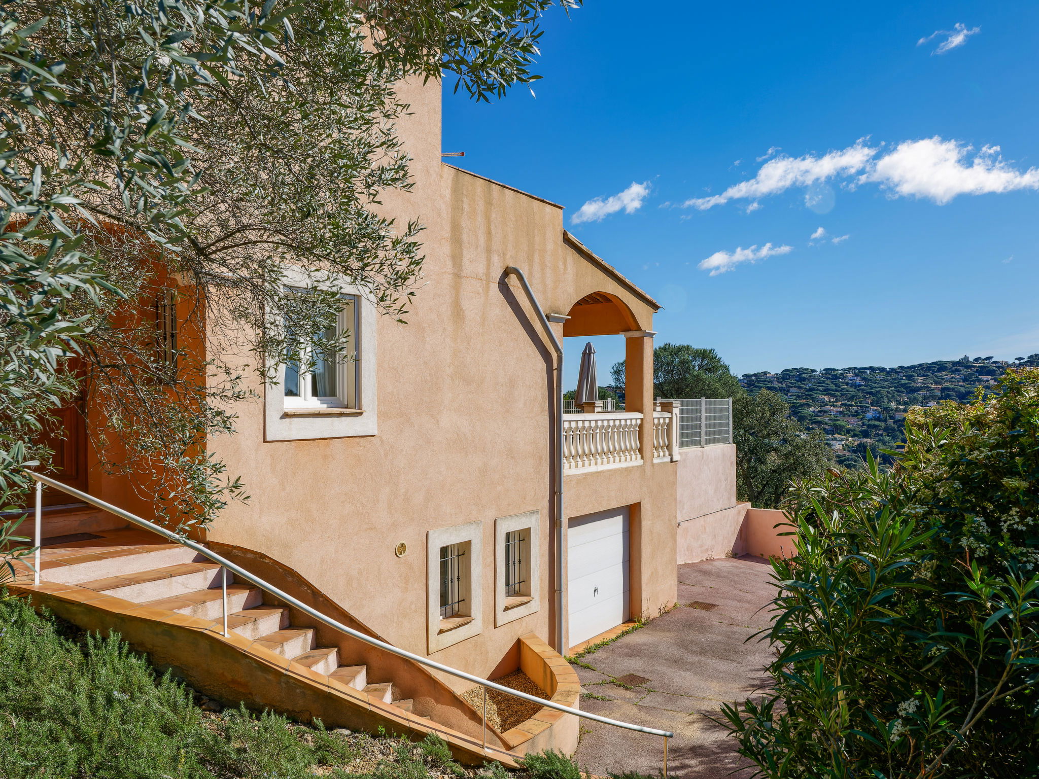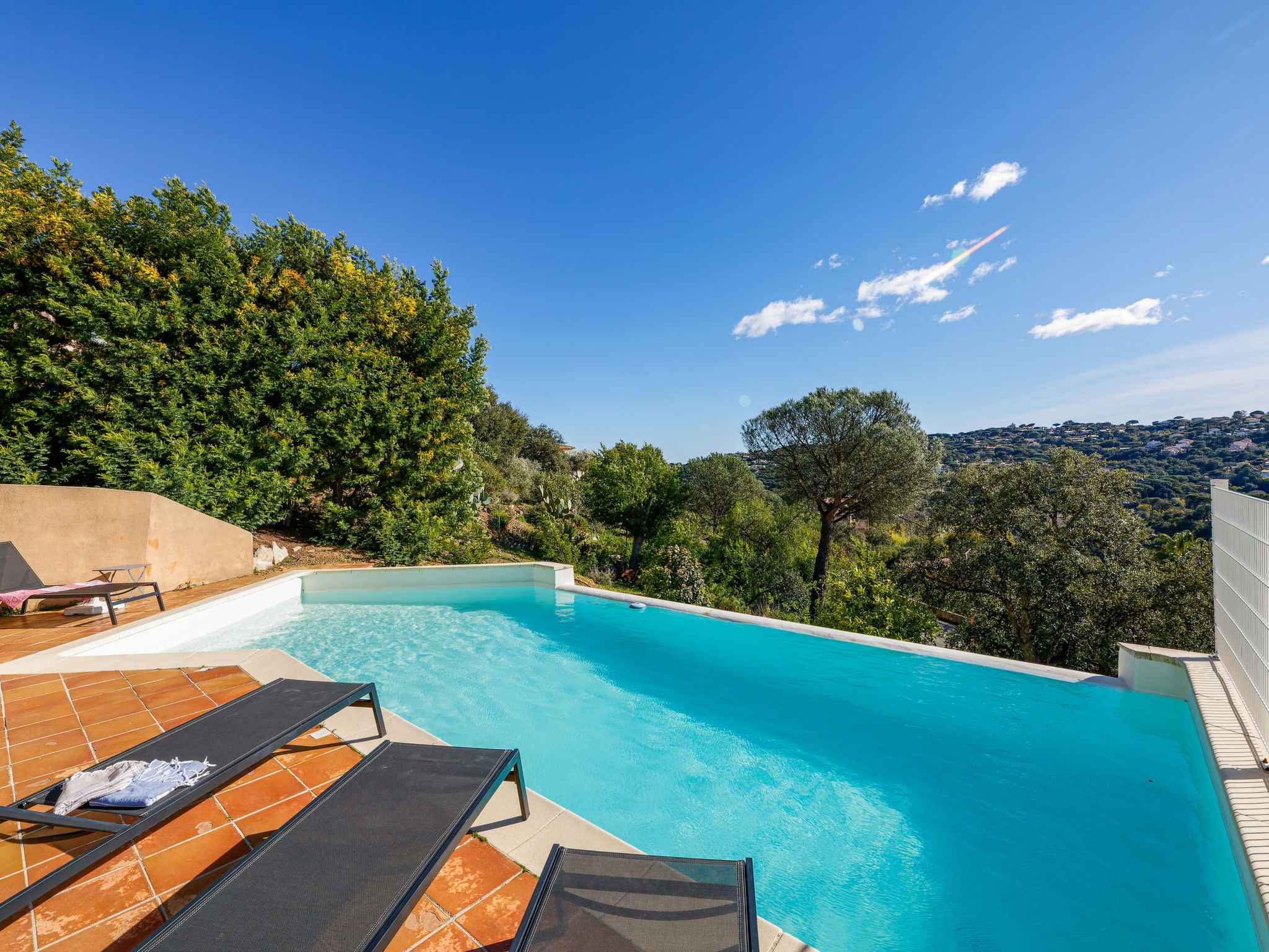 Villa "La Figuière". Dans le quartier de Domaine du Golf, à 3.5 km du centre de Sainte Maxime, sur un versant, quartier résidentiel, à 2.5 km de la mer, à 2.5 km de la plage. A usage privé: terrain 1'800 m2 (clôturé), jardin sur plusieurs niveaux avec plantes, piscine (9 x 3 m, profondeur 100 - 180 cm, disponibilité saisonnière: 01.Jun. - 31.Sep.) avec marches intérieures. Terrain de pétanque. Accès en voiture jusqu'à la maison. (5 marches). Place de parking (pour 2 voitures) sur le terrain, garage individuel. Magasins 3.5 km, arrêt de bus 600 m, plage de sable "La Nartelle" 2.5 km, centre thermal "Thalasso Spa Les Issambres" 5 km. Port plaisance 3 km, terrain de golf (18 trous) 2 km, piste cyclable 1 km. Attractions à proximité: Aqualand waterpark 6 km, Navette / shuttle boat St-Tropez 15min 3 km, Saint-Tropez/Ramatuelle 17 km, Port Grimaud 10 km. Région de randonnées: Massif des Maures 10 km, Massif de l'Esterel 25 km. Veuillez noter: voiture recommandée. Le propriétaire n'accepte pas les groupes de jeunes. La remise des clés a lieu à l’agence de Sainte-Maxime, 3 km.