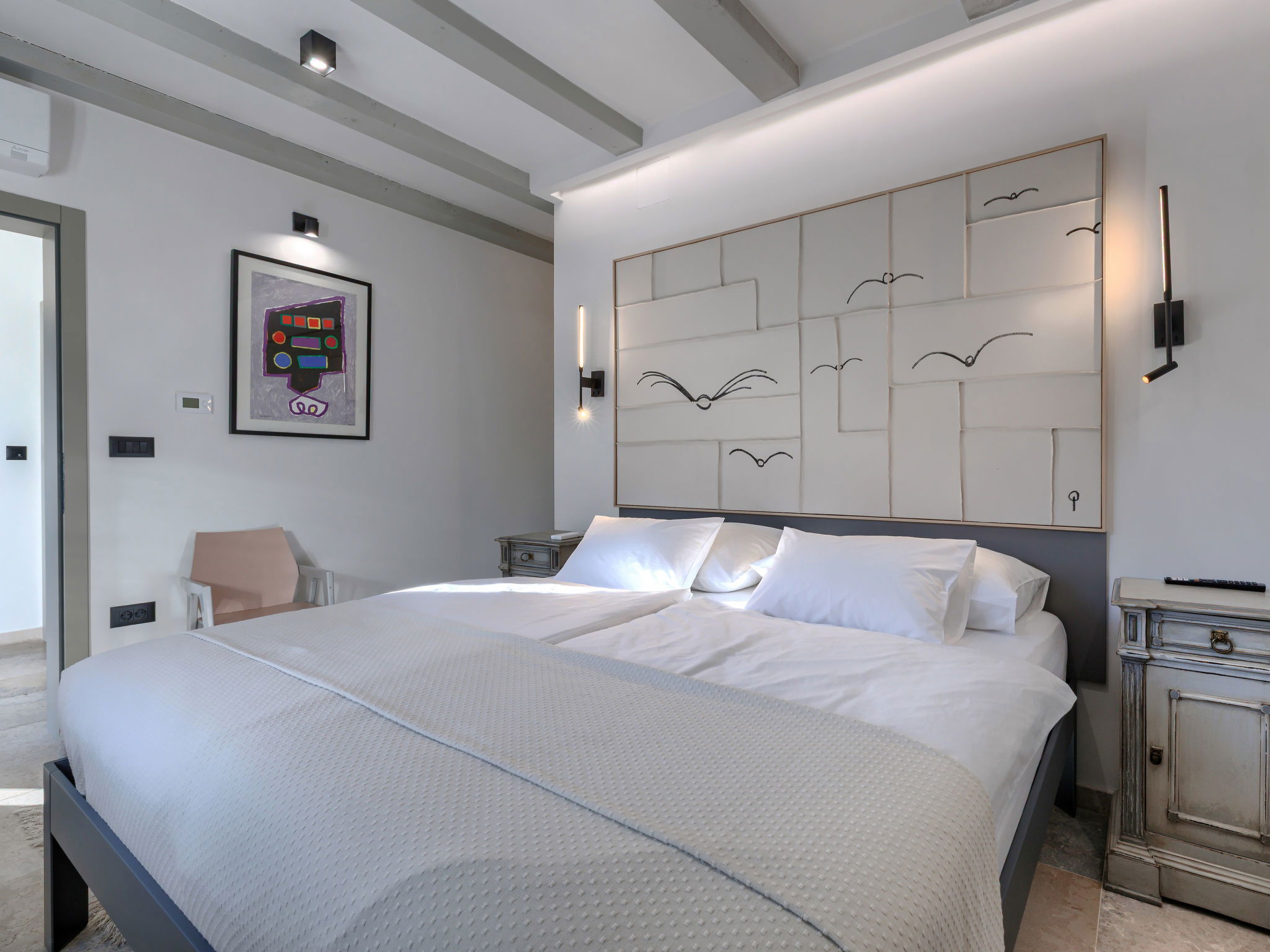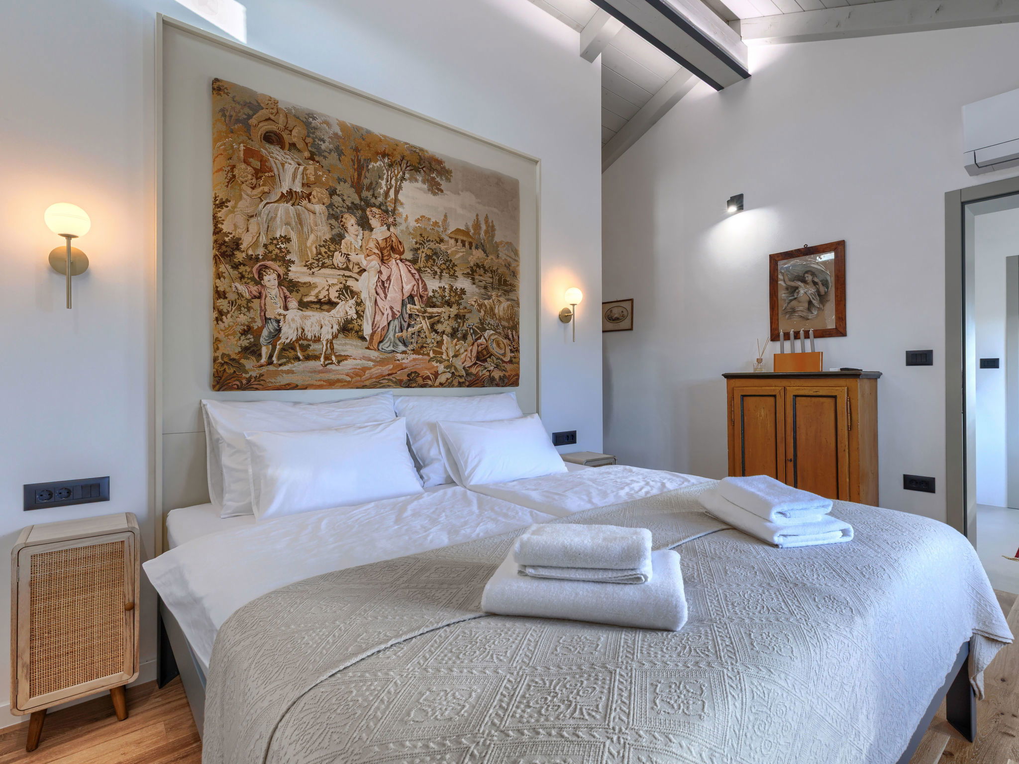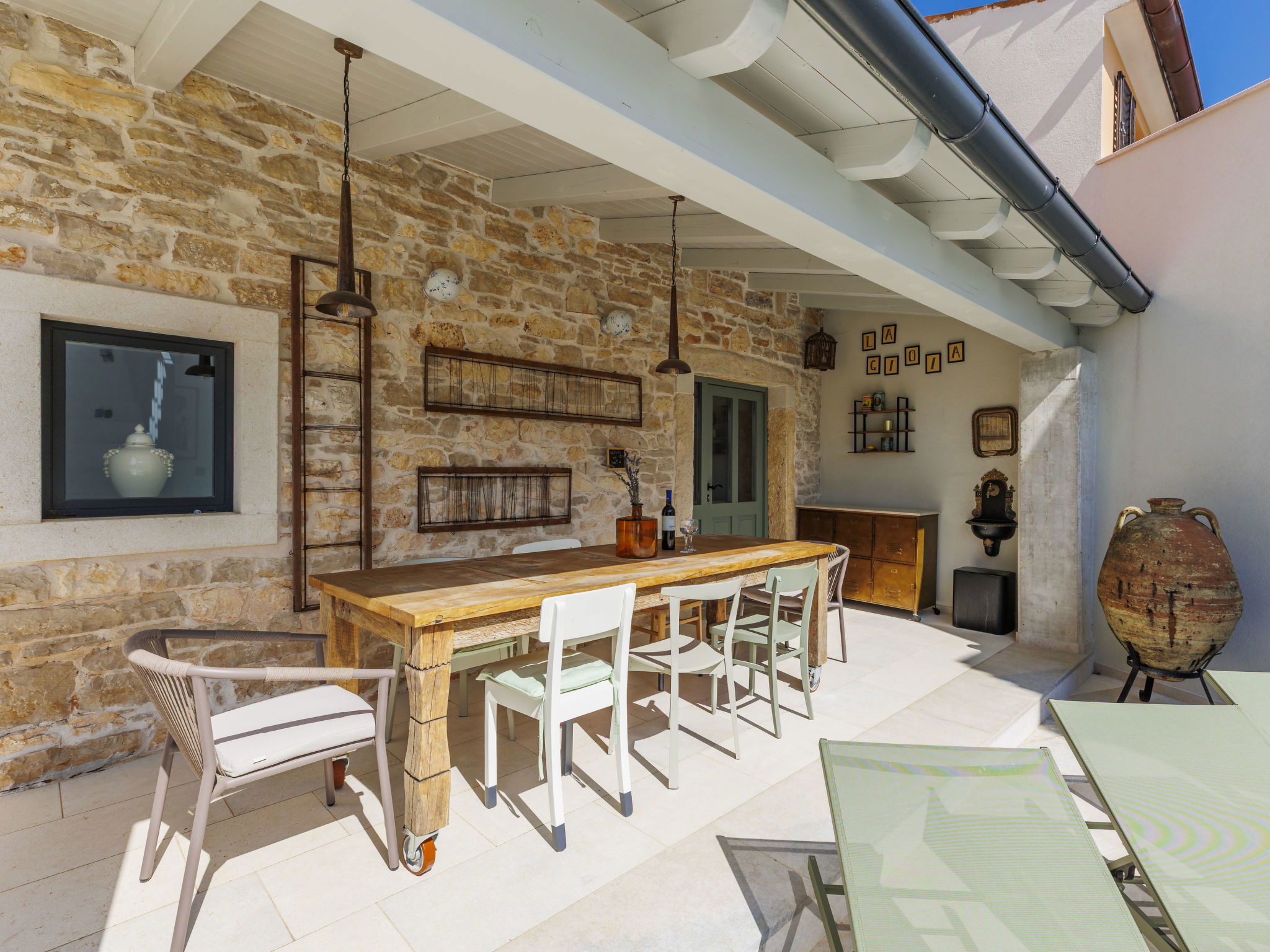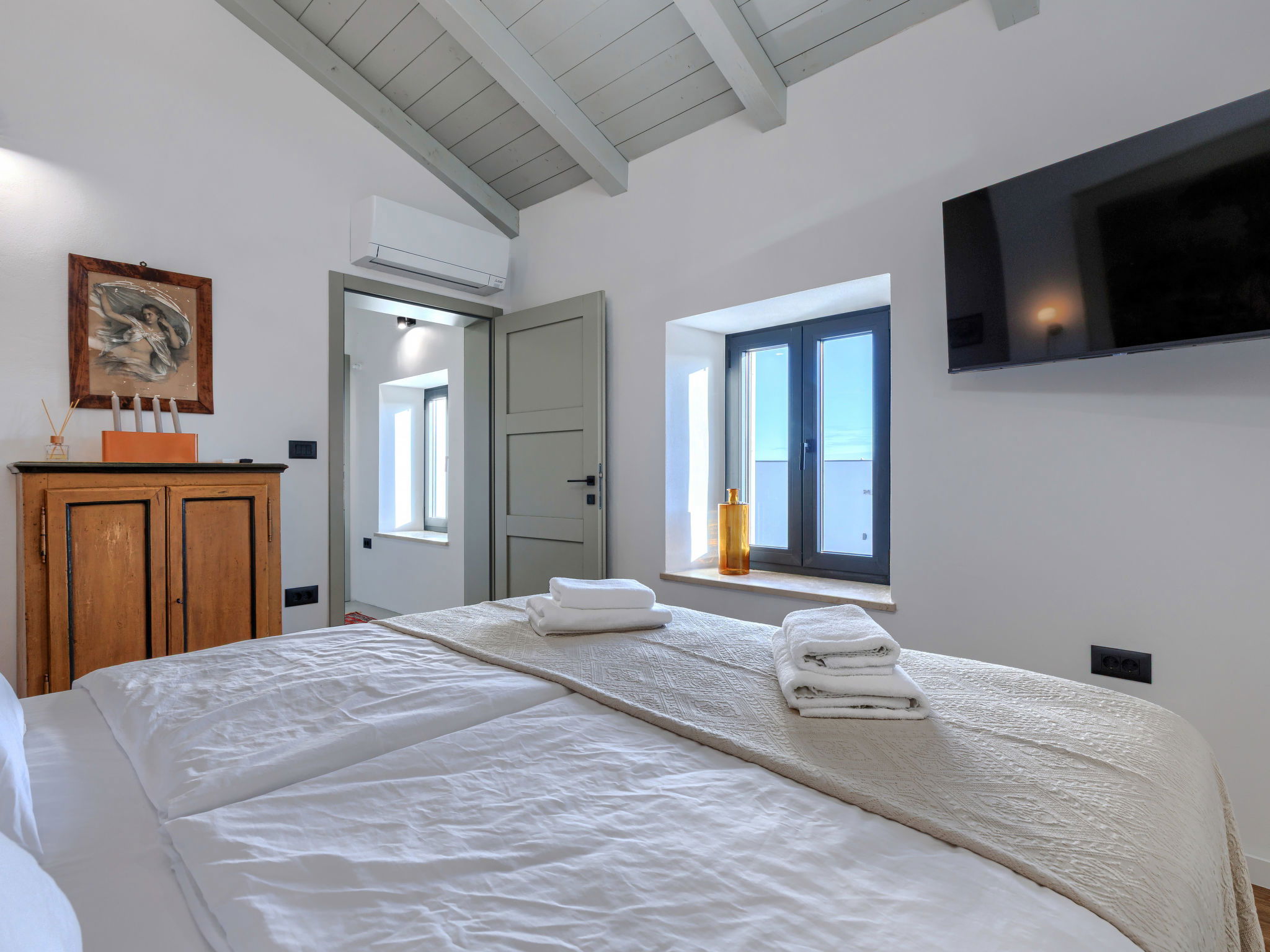 Belle maison "La Gioia", de 2 étages. Dans le hameau de Rudani, à 7 km du centre de Žminj, à 20 km de la mer. A usage privé: terrain 750 m2 (clôturé), piscine rectangulaire, chauffée (7 x 3 m, profondeur 140 cm, disponibilité saisonnière: 01.Avr. - 01.Nov.) avec marches intérieures et systeme d'électolyseur au sel. Douche extérieure, terrasse (20 m2), meubles de jardin, barbecue. Infrastructures de la Maison: accès internet, air-conditionné, lave-linge. Place de parking près de la maison sur le terrain. Borne de recharge électrique. Supermarché 9 km, café 7 km, cyber café 7 km, arrêt de bus 10 km, plage de graviers 20 km. Le propriétaire n'accepte pas les groupes de jeunes. Veuillez noter: Aéroport 32 km de la maison. L'unité comprend 2 maisons louées ensemble. Piscine chauffée (en sus). Si vous souhaitez que la piscine soit chauffée, veuillez le notifier 7 jours à l'avance.